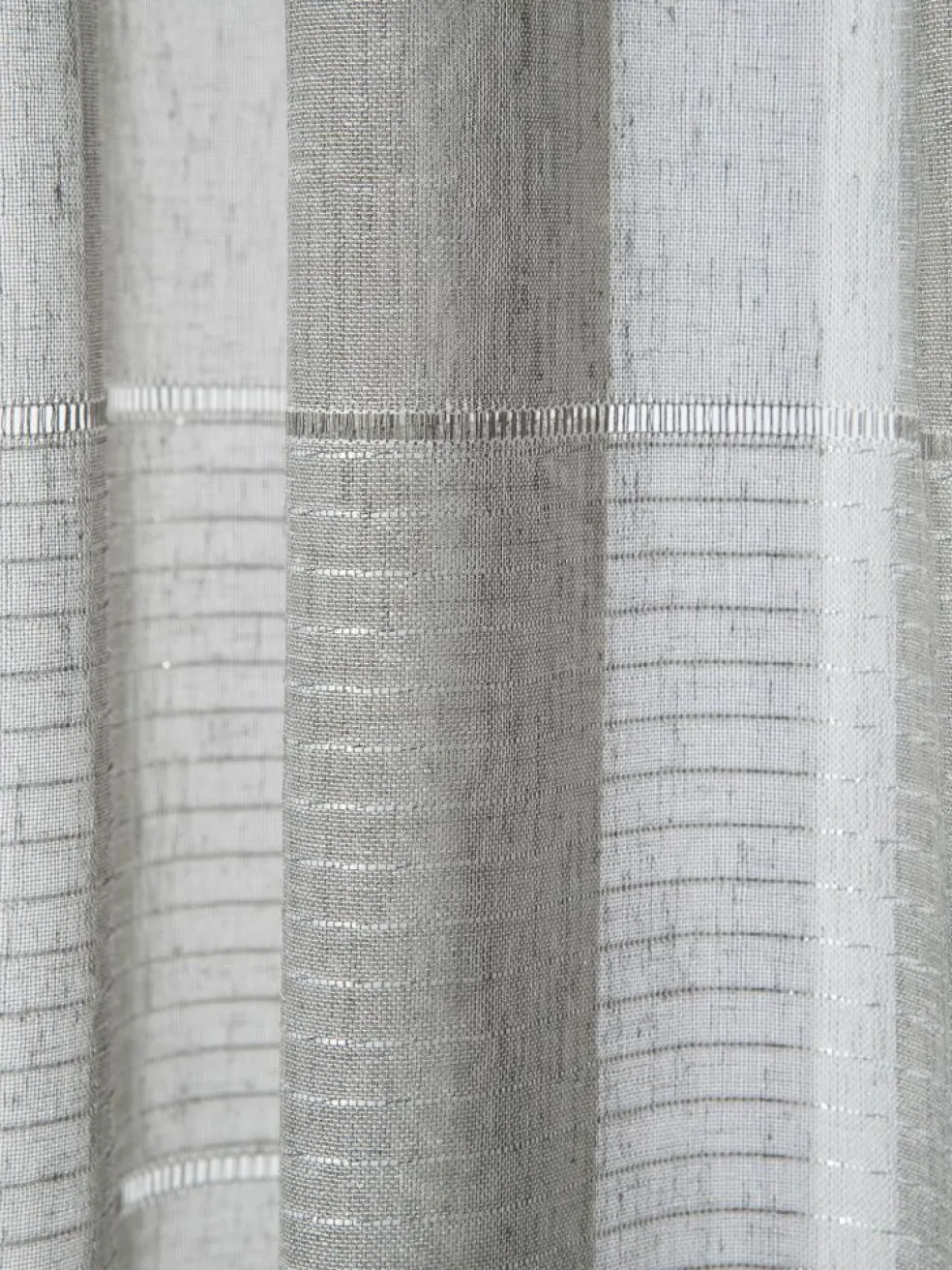 Noblessa ist ein edler Schlaufenschal, der einen Hauch von Eleganz an jedes Fenster zaubert. Das zarte Streifenmuster mit eingewebten Lurexfäden überzeugt in jedem Raum und kann dank der zwei dezenten Farben mit den unterschiedlichsten Einrichtungsstilen kombiniert werden. Hergestellt aus 100 % Polyester. Waschbar bei bis zu 30 °C. Paket enthält je einen Schlaufenschal.