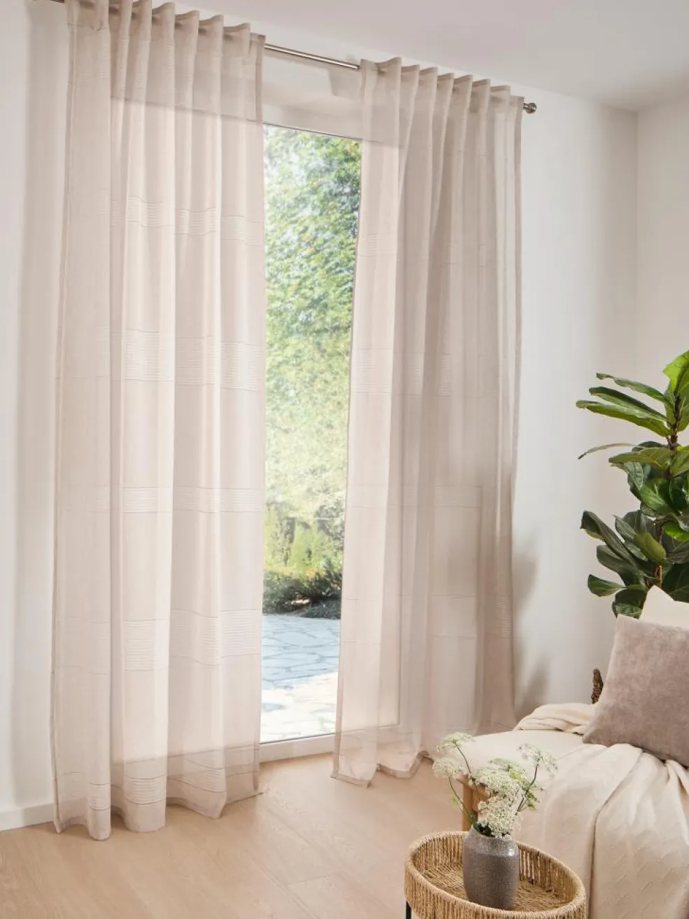 Noblessa ist ein edler Schlaufenschal, der einen Hauch von Eleganz an jedes Fenster zaubert. Das zarte Streifenmuster mit eingewebten Lurexfäden überzeugt in jedem Raum und kann dank der zwei dezenten Farben mit den unterschiedlichsten Einrichtungsstilen kombiniert werden. Hergestellt aus 100 % Polyester. Waschbar bei bis zu 30 °C. Paket enthält je einen Schlaufenschal.