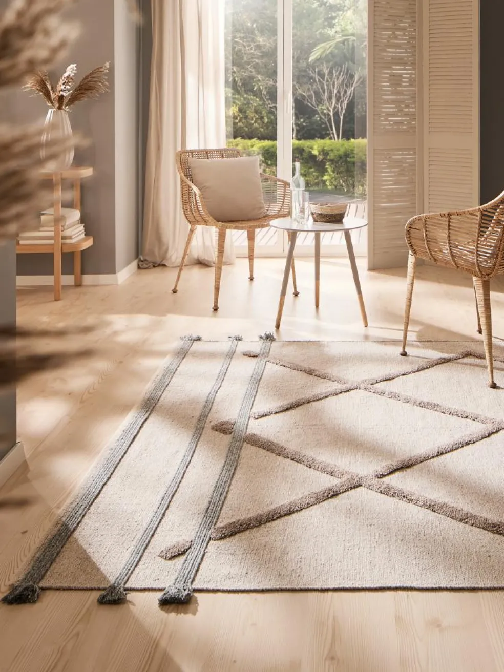 , Polyester und Baumwolle ist er nicht nur ästhetisch ansprechend, sondern auch strapazierfähig und pflegeleicht.| Eigenschaften: | für Fußbodenheizung geeignet |