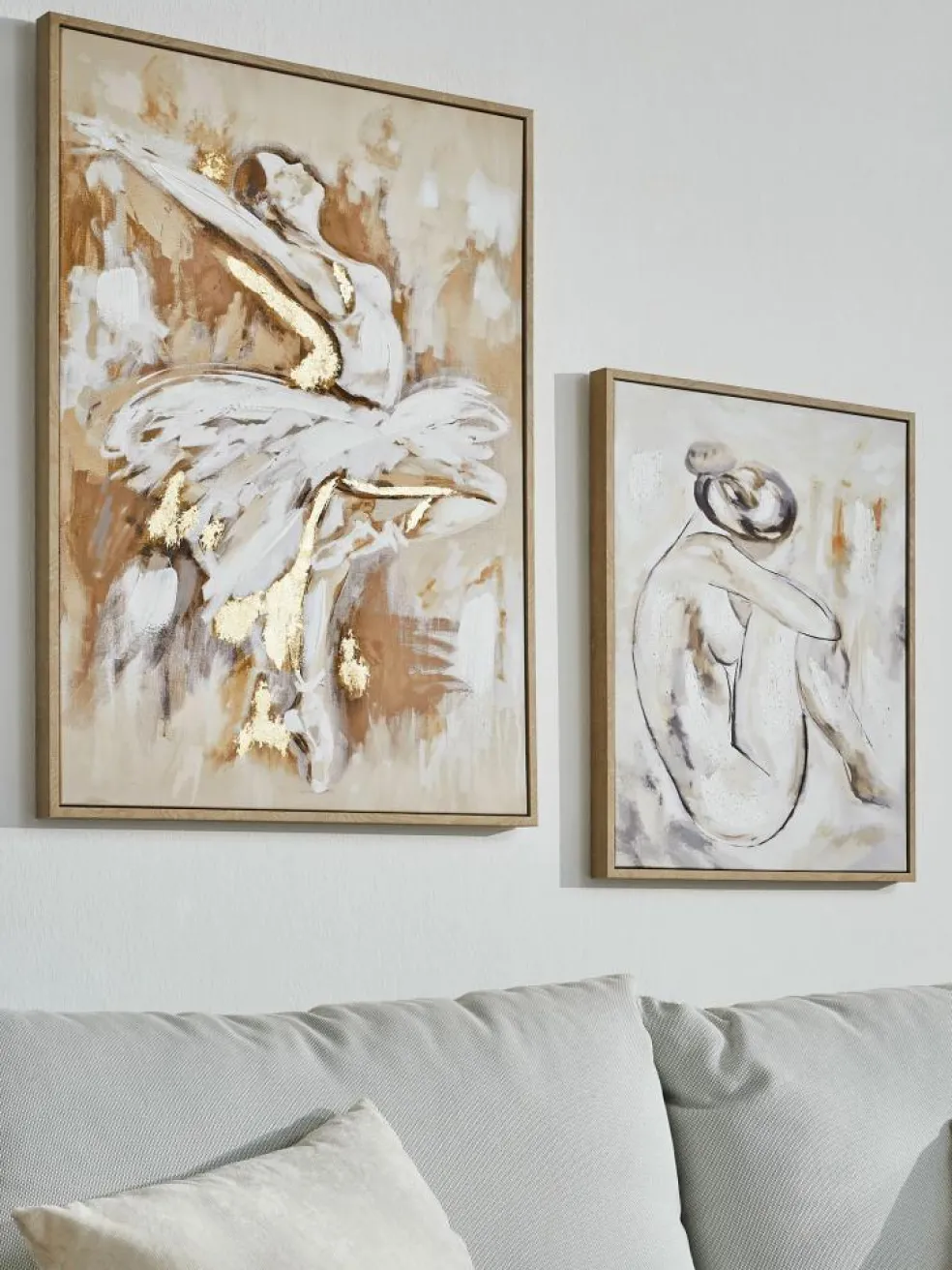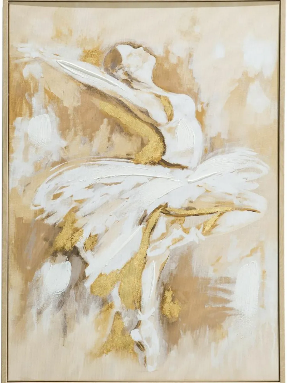 Ballerina beim Tanz. Dieses Giclée im MDF-Rahmen wurde per Hand übermalt und zusätzlich mit Goldfolie veredelt. Das sorgt für interessante Lichtreflexe. Inklusive Aufhängung. Ca. 50 x 70 cm.