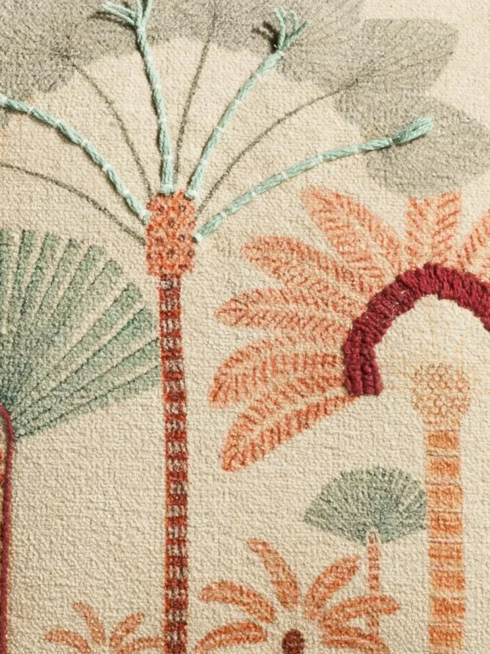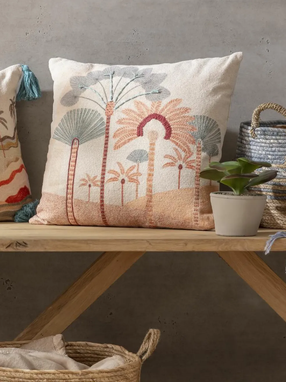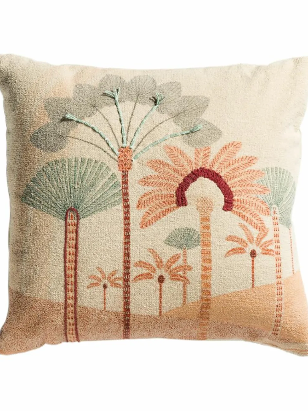 Unser Osima Kissen ziert ein modernes und farbenfrohes Palmen-Motiv aus Stickerei- und Druck-Elementen, die sofort Sommer- und Urlaubsstimmung aufkommen lassen. Die Rückseite ist unifarben. Der Bezug ist aus reiner Baumwolle hergestellt. Inklusive Füllung. Mit Reißverschluss.