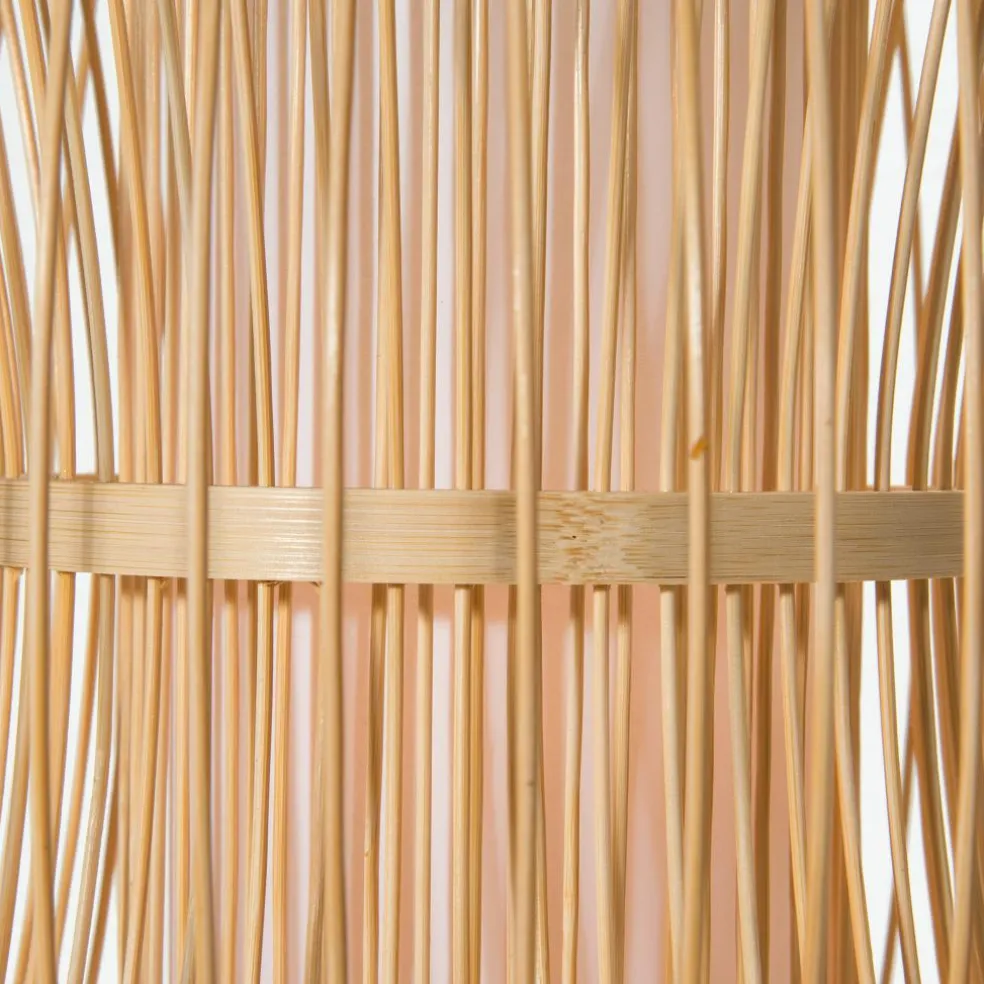 Bambusstäbe werden von Hand geformt und von Hand in die jeweiligen Ringe aus Bambus gesteckt.Bambus ist ein schnell wachsende Pflanze und deshalb ein beliebter, nachhaltiger Werkstoff. Exkl. Leuchtmittel E 27, 40 W. Oyoma ist ca. 51 cm hoch.