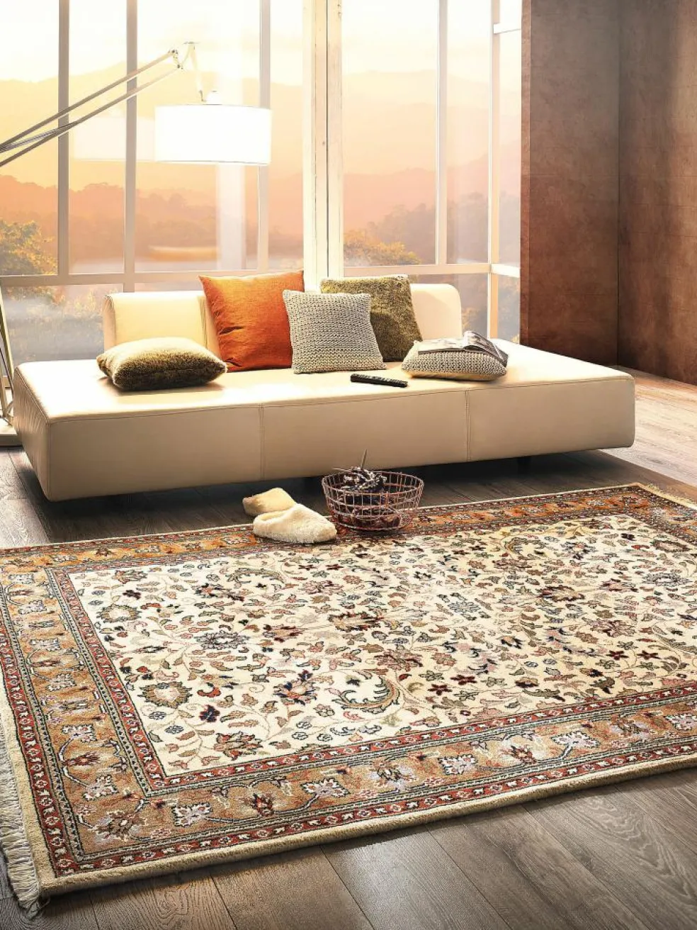 setzt harmonische Akzente durch seine außergewöhnliche, detailreiche, feine Zeichnung. Dieser qualitativ hochwertigeOrientteppich