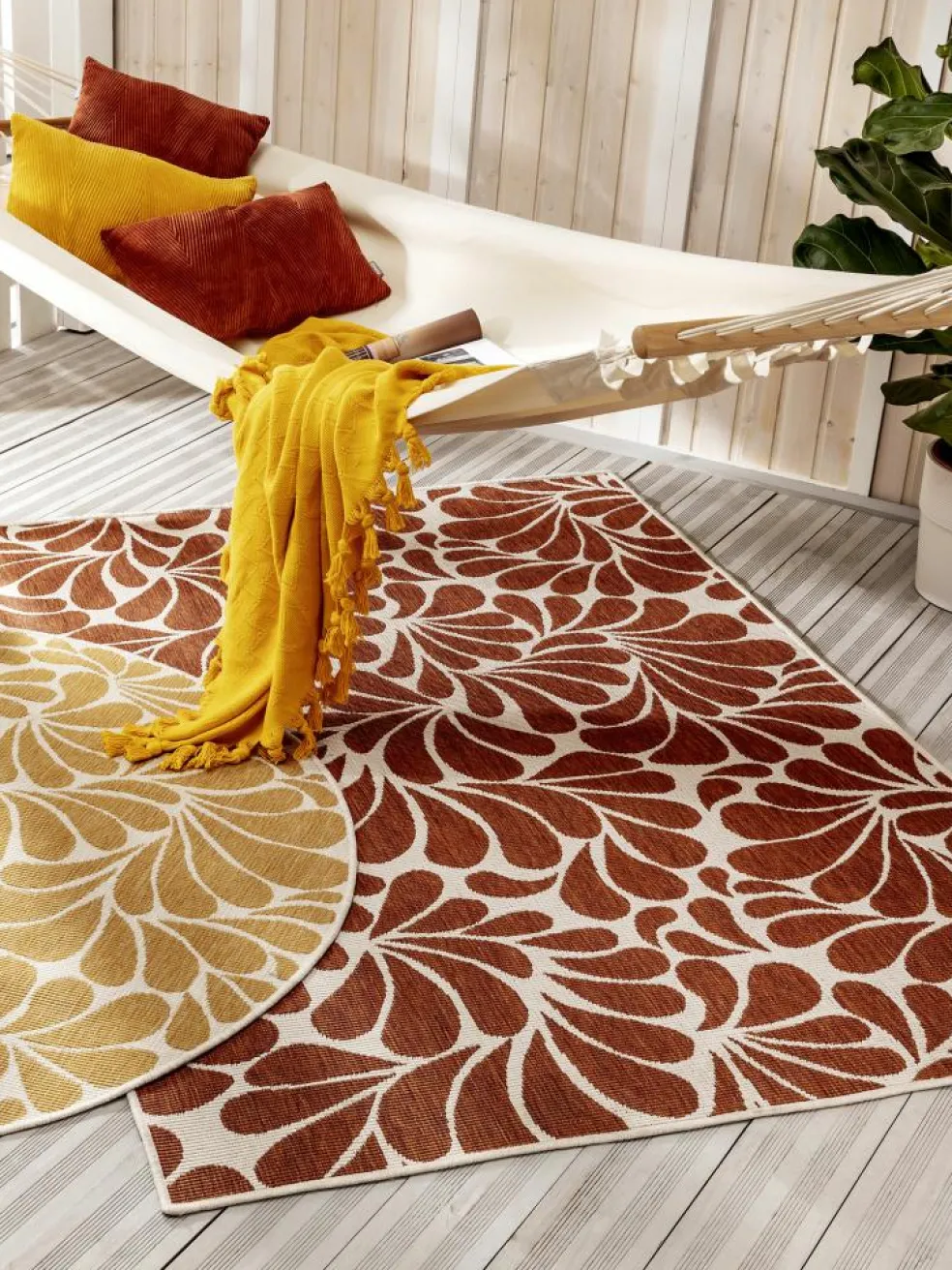 Beidseitig verwendbar ist dieser Teppich ein Muss für jeden, der ab und zu auch etwas Abwechslung nach Hause bringen möchte. Eine Seite ist etwas schlichter gehalten, während die Rückseite mehr Farbe zeigt. Neben seinen tollen sommerlichen Farben trägt auch das Muster dazu bei, dass man sofort in ein sommerliches Glücksgefühl versetzt wird. Bestehend aus 100 % Polypropylen besitzt er nicht nur eine angenehm weiche Haptik, sondern ist auch besonders strapazierfähig und pflegeleicht.