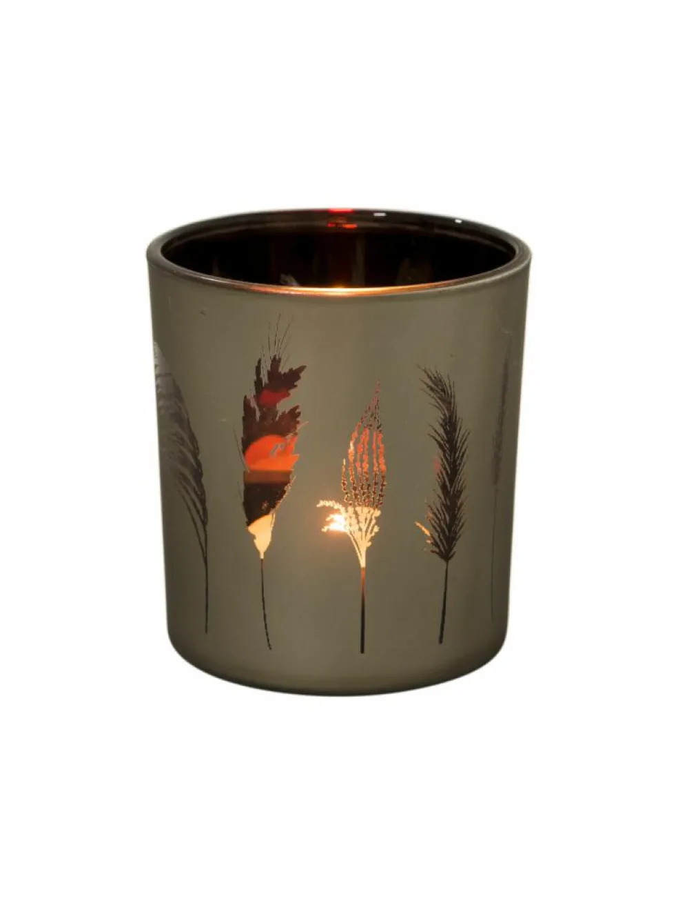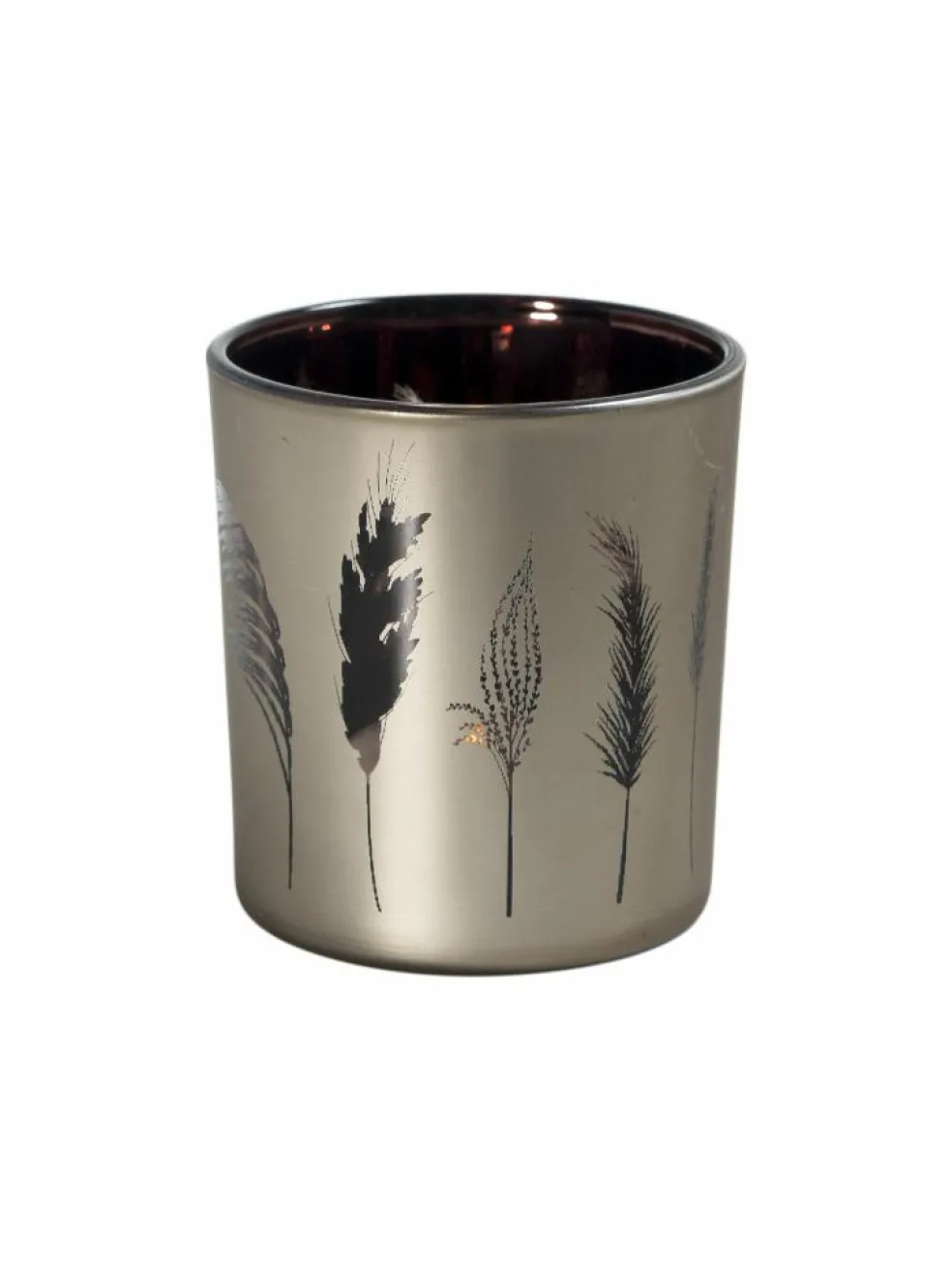 Das zarte Gräser-Motiv von unserem Pampou Windlicht ist der ideale Begleiter für gemütliche Abende zuhause. Von außen schimmert Pampou in einem zarten Silber. Die bronzefarbene Beschichtung im Inneren rundet das edle Gesamtbild ab.