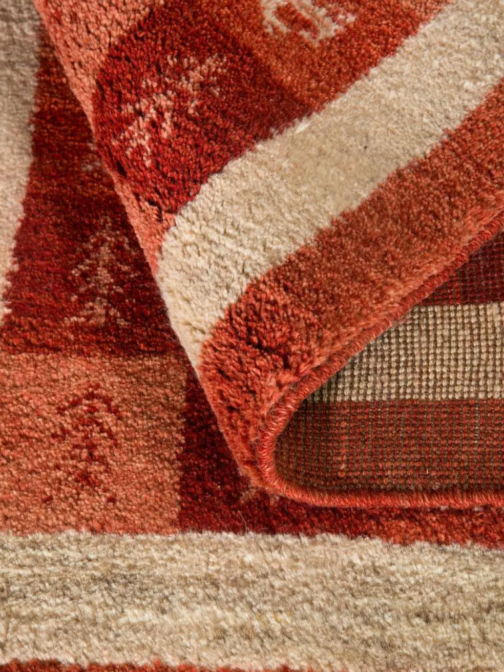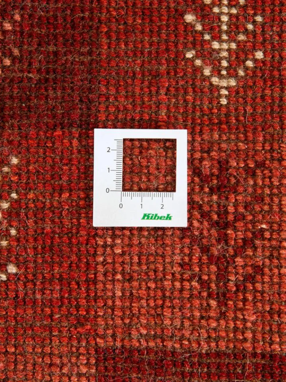 . Die Schur ist relativ hoch, der Griff fest. Die Muster sind meist schlicht oder eine Kombination mit traditionellen Mustern. Mustervorlagen gibt es nicht. Geknüpft werden alle Muster aus dem Kopf.| Gesamthöhe: | ca. 18 mm |