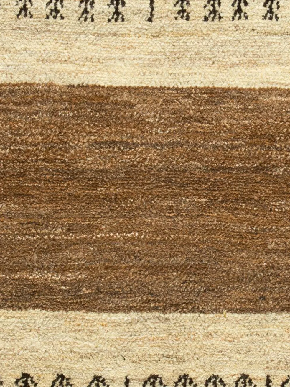. Die Schur ist relativ hoch, der Griff fest. Die Muster sind meist schlicht oder eine Kombination mit traditionellen Mustern. Mustervorlagen gibt es nicht. Geknüpft werden alle Muster aus dem Kopf.| Gesamthöhe: | ca. 18 mm |