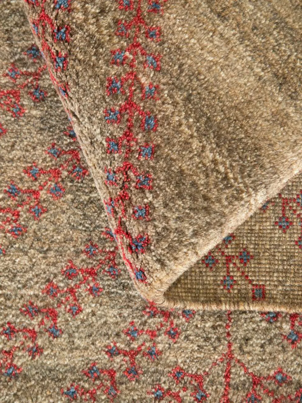 . Die Schur ist relativ hoch, der Griff fest. Die Muster sind meist schlicht oder eine Kombination mit traditionellen Mustern. Mustervorlagen gibt es nicht. Geknüpft werden alle Muster aus dem Kopf.| Gesamthöhe: | ca. 18 mm |