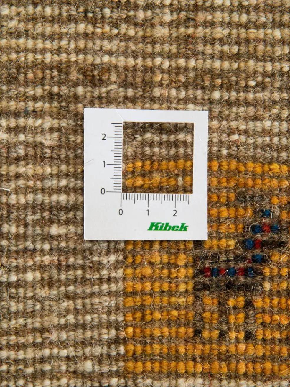 . Die Schur ist relativ hoch, der Griff fest. Die Muster sind meist schlicht oder eine Kombination mit traditionellen Mustern. Mustervorlagen gibt es nicht. Geknüpft werden alle Muster aus dem Kopf.| Gesamthöhe: | ca. 18 mm |