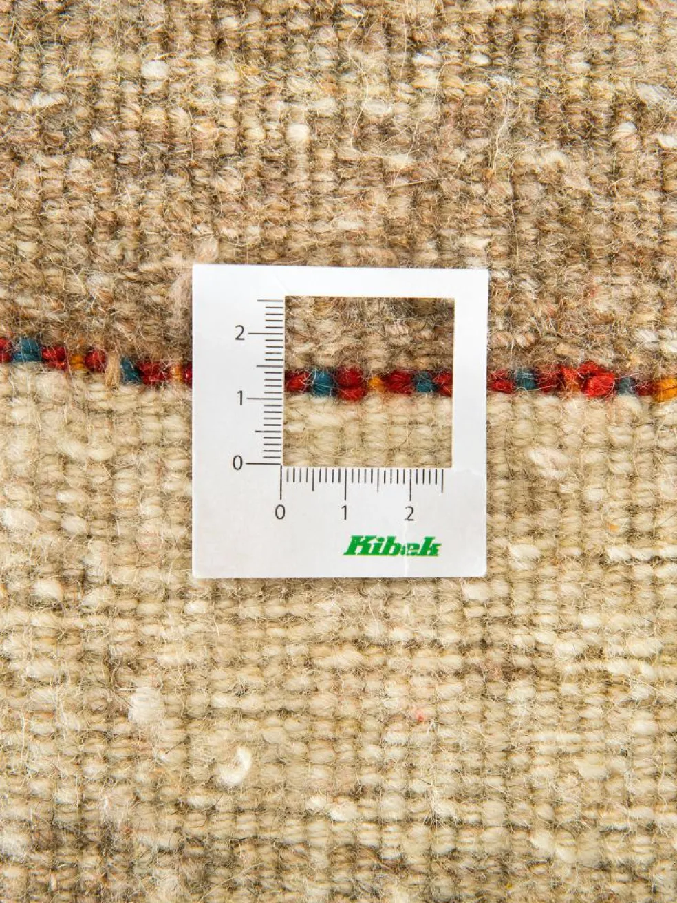 . Die Schur ist relativ hoch, der Griff fest. Die Muster sind meist schlicht oder eine Kombination mit traditionellen Mustern. Mustervorlagen gibt es nicht. Geknüpft werden alle Muster aus dem Kopf.| Gesamthöhe: | ca. 18 mm |