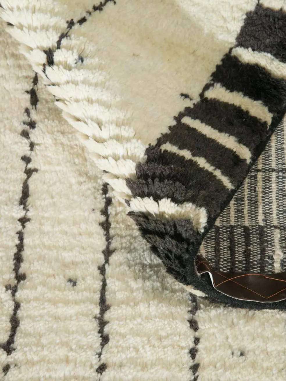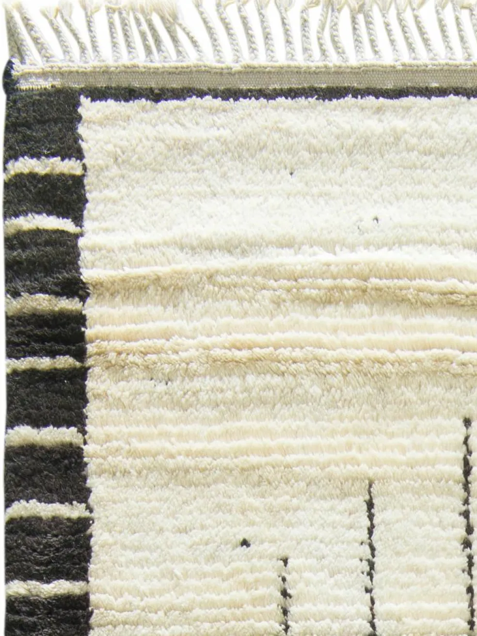 . Die Schur ist relativ hoch, der Griff fest. Die Muster sind meist schlicht oder eine Kombination mit traditionellen Mustern. Mustervorlagen gibt es nicht. Geknüpft werden alle Muster aus dem Kopf.| Gesamthöhe: | ca. 18 mm |