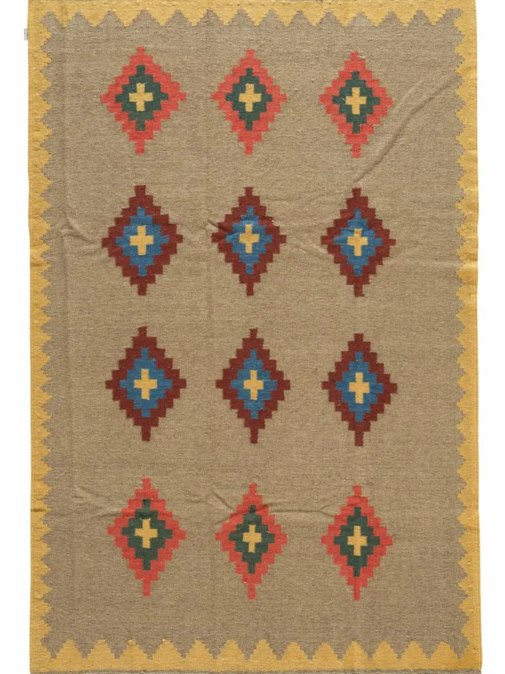 beidseitig verwendbar. – Durch den typischen weichen, deckenartigen Charakter des Kelims empfehlen wir eine trittfedernde und rutschhemmende Teppichunterlage zwischen Fußboden und Teppich zu legen. Sie finden unsere KIBEK ALLSTOP-SUPER unter ‚Teppiche‘ in der Kategorie ‚Teppichunterlagen‘ hier bei uns im Onlineshop.| Gesamthöhe: | ca. 5 mm |