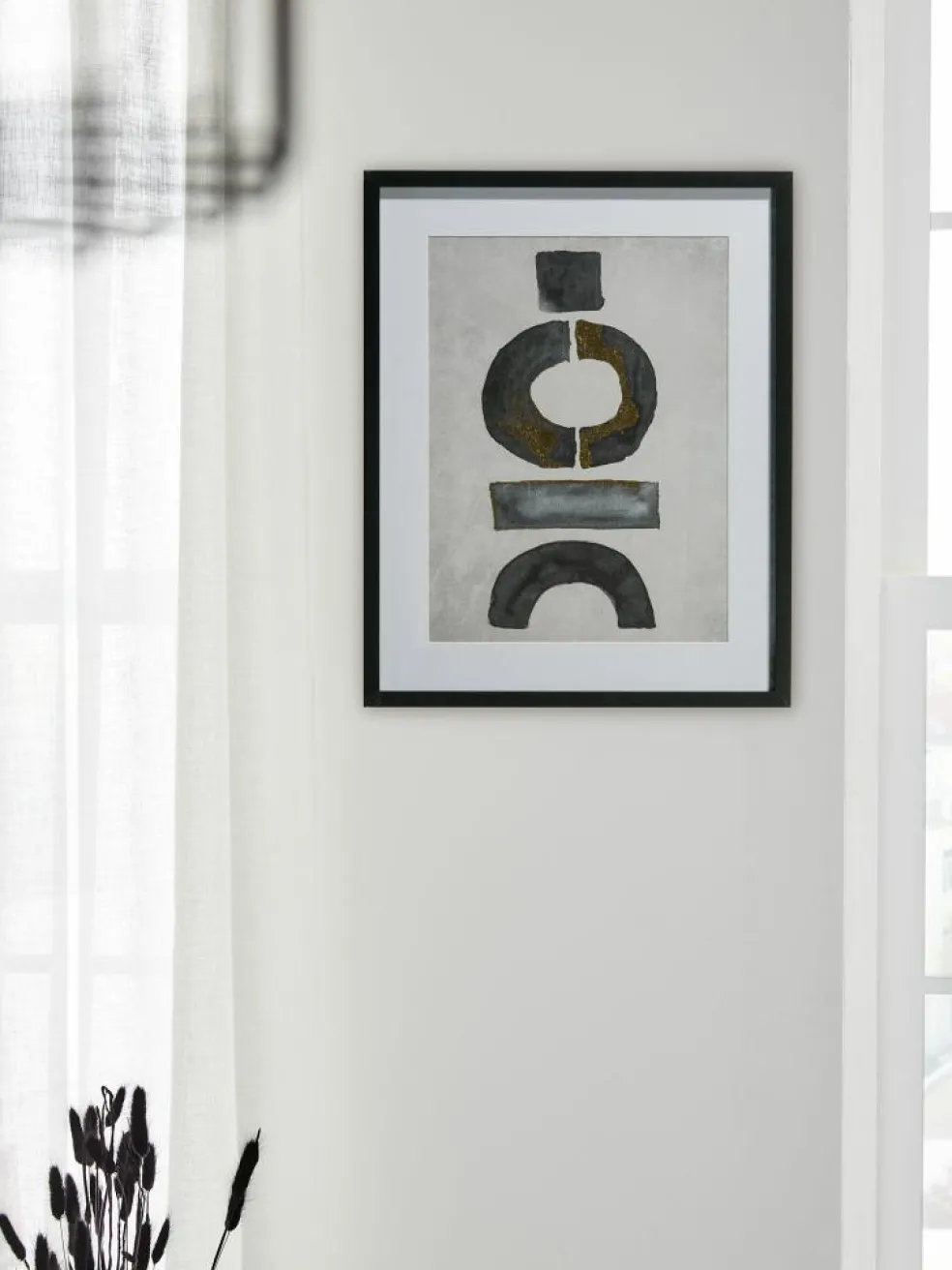 Hochwertiges Giclée, das durch den partiellen Einsatz von goldfarbener Folie elegante Akzente setzt. Die Leiste aus schwarzem MDF Matboard verleiht dem Bilderrahmen eine edle und moderne Optik – perfekt für eine stilvolle Wandgestaltung.
