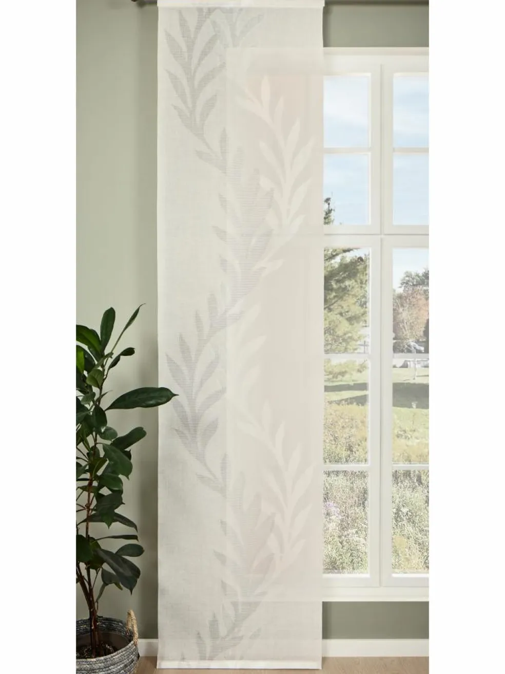 Mit seinem dezenten Ranken-Design fügt sich der leicht transparente Flächenvorhang super in sämtliche Einrichtungsstile ein und lässt sich schön mit anderen Vorhängen kombinieren. Durch seine Transparenz reguliert er das Licht, um sowohl an dunklen, als auch an hellen Sommertagen das optimale Lichtverhältnis im Raum zu schaffen. Hergestellt aus 100 % Polyester und waschbar bei bis zu 30 °C. Paket enthält je einen Vorhang.