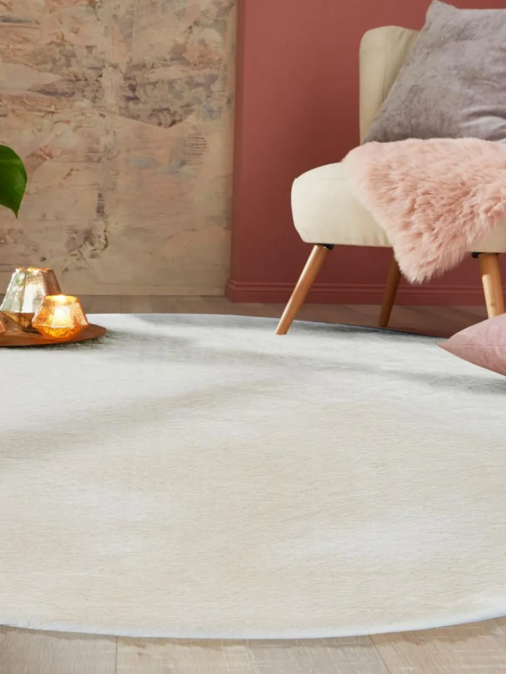 Kunstfell-Teppich. Wärme und Behaglichkeit strahlt dieses gewebte Kunstfell aus. Florhöhe ca. 25 mm. Flor aus 100% Polyester.