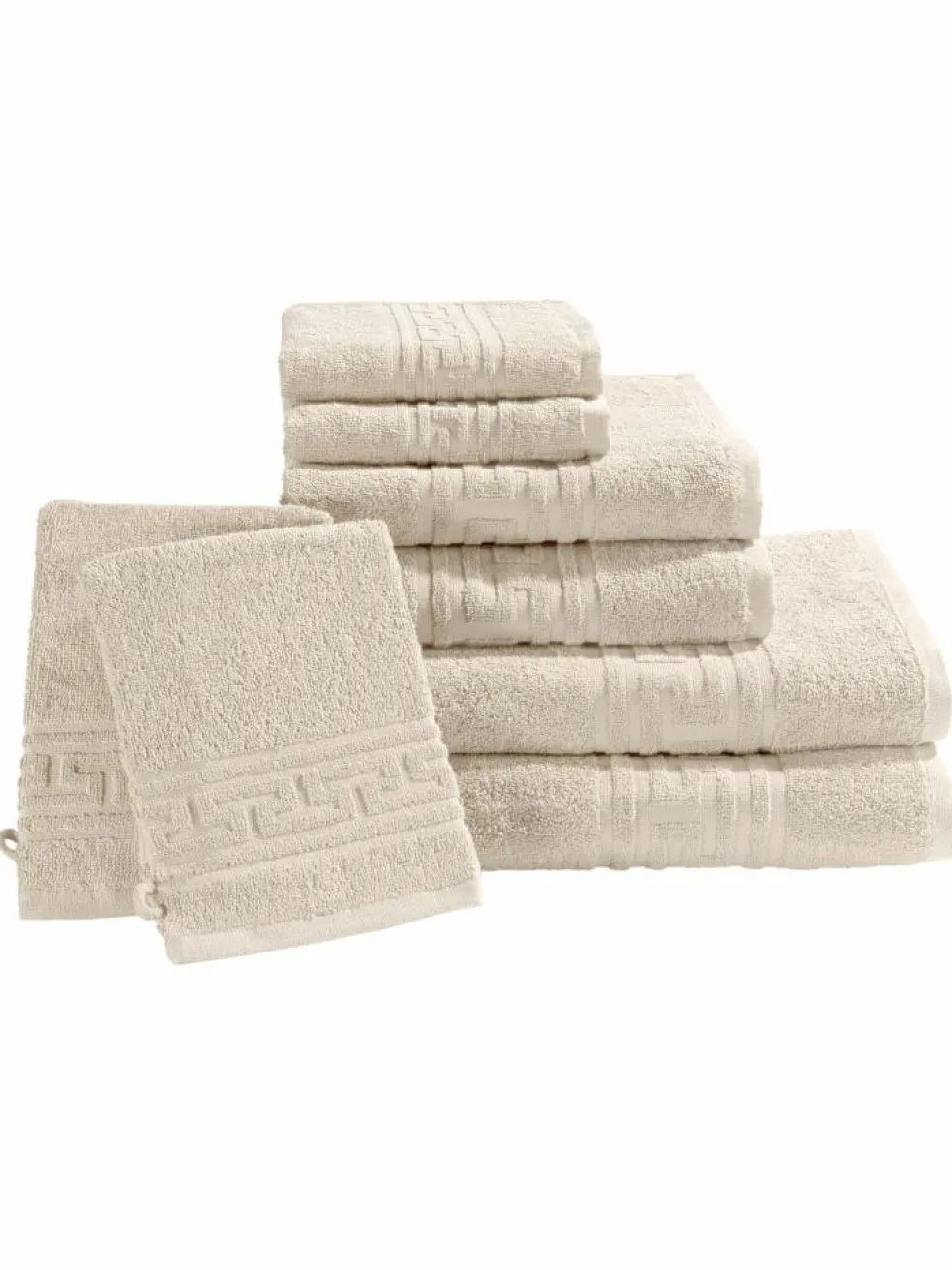 Dieses Handtuch ist bis ins Detail durchdacht. Für die Aufhängung wird eine stabile Kordel verwendet, die Seiten verfügen über eine Doppelnaht und die Ober- und Unterkante werden sorgfältig von Hand genäht. RECIFE ROYAL ist durch die Verwendung von hochwertiger Baumwolle und einem Einsatzgewicht von 520 g pro m² äußerst strapazierfähig und saugstark. Die samtartige Oberfläche verleiht ein angenehmes Wellness-Feeling. RECIFE ROYAL ist bis 60° C waschbar, Wäschetrockner geeignet und Oeko-Tex Standard zertifiziert. Das 8-teilige Vorteilspaket besteht aus zwei Waschhandschuhen je ca. 16 x 22 cm, zwei Gästetüchern je ca. 30 x 30 cm, zwei Handtüchern je ca. 50 x 100 cm und zwei Duschtüchern je ca. 70 x 140 cm.