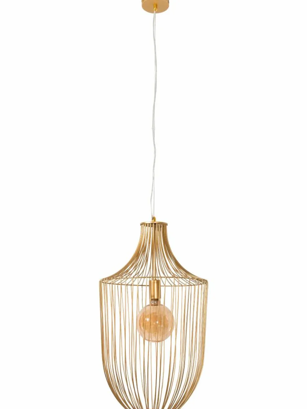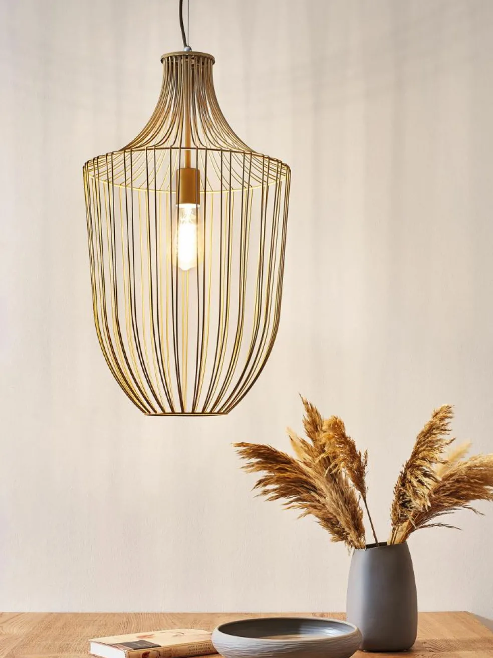 Edle Pendellampe aus Metall. EEK: A++-E. Exkl. Leuchtmittel E27 max. 40W. Ca. 35 cm Ø, 120 cm hoch.