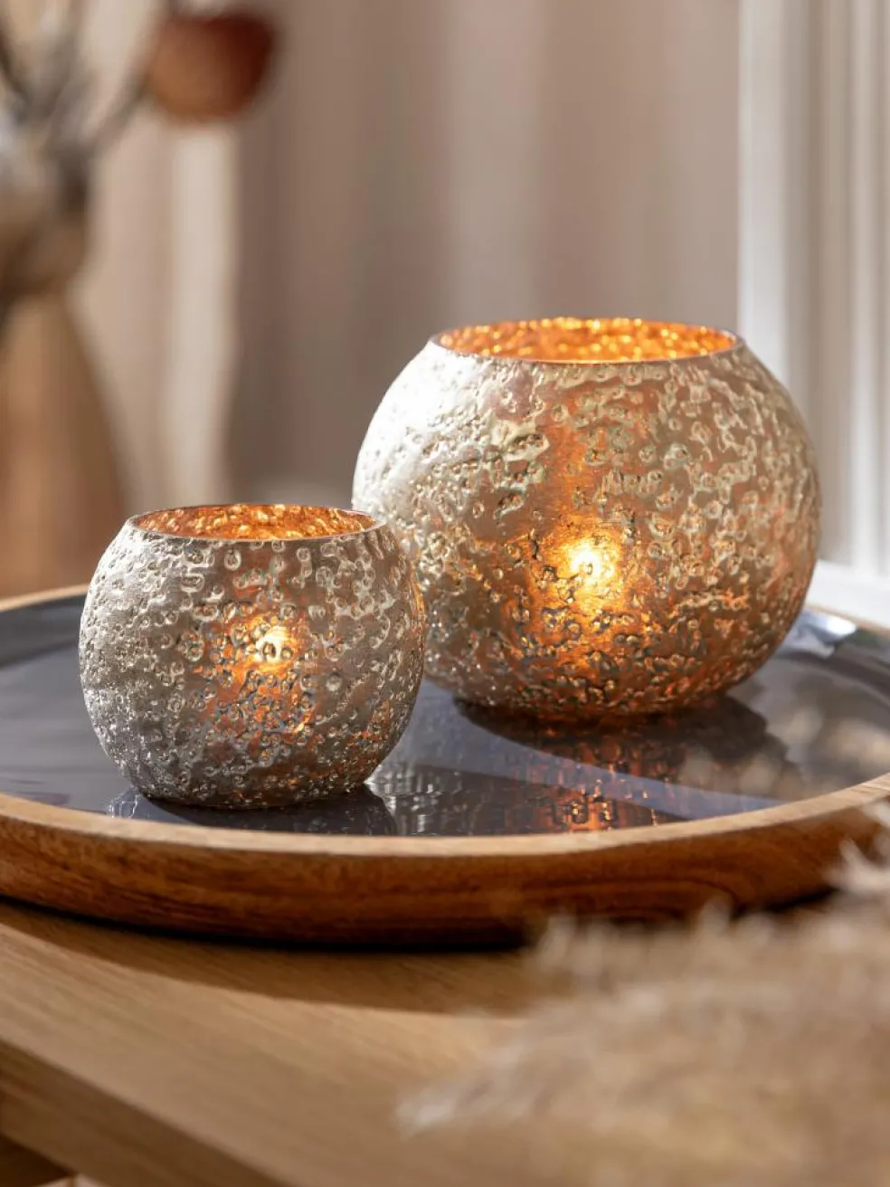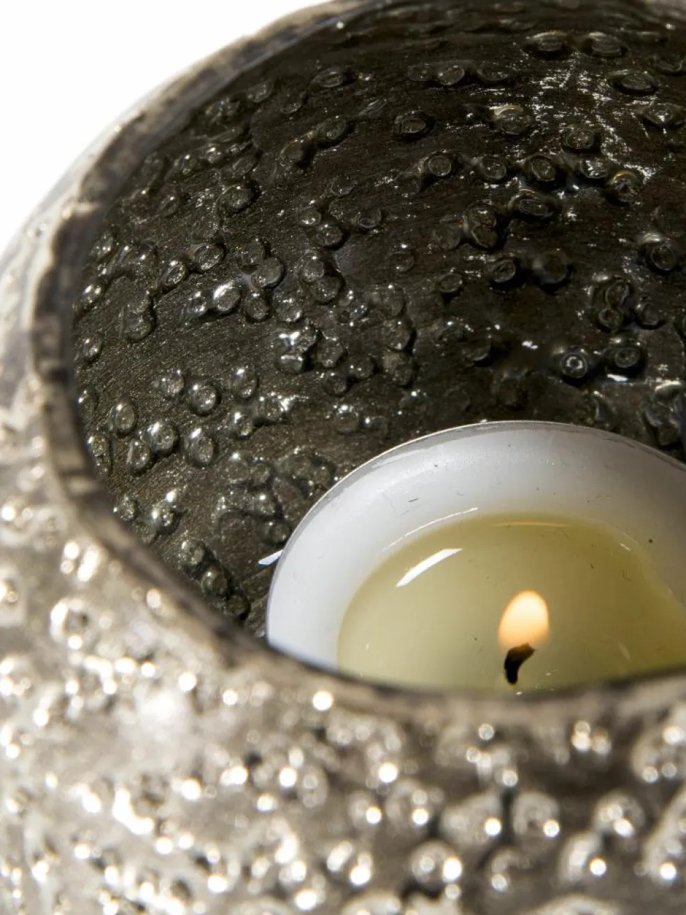 Mit Silva schafft man eine gemütliche Atmosphäre. Das silberne Windlicht hat eine zart schimmernde, strukturierte Oberfläche, die das Kerzenlicht auf besondere Weise im Raum verteilt.