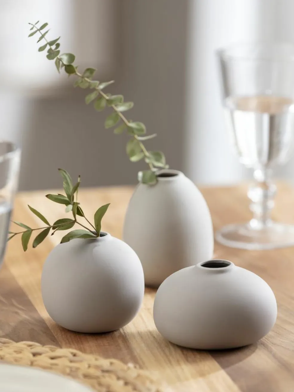 Aus matt weißer und grauer Keramik. Erhältlich in drei passend aufeinander abgestimmten, schwungvollen Formen, die diesen Vasen einen ganz besonderen Charme verleihen.