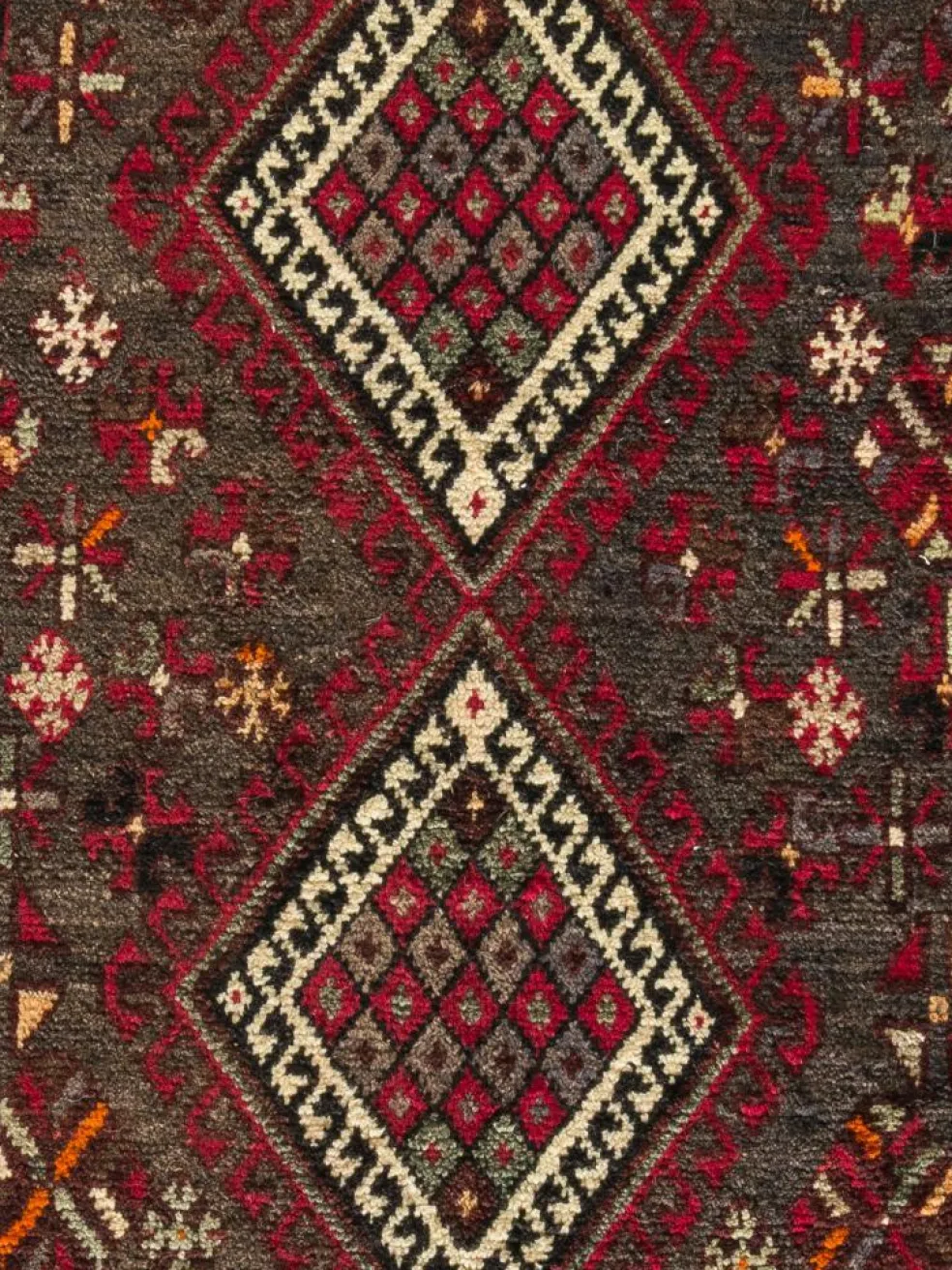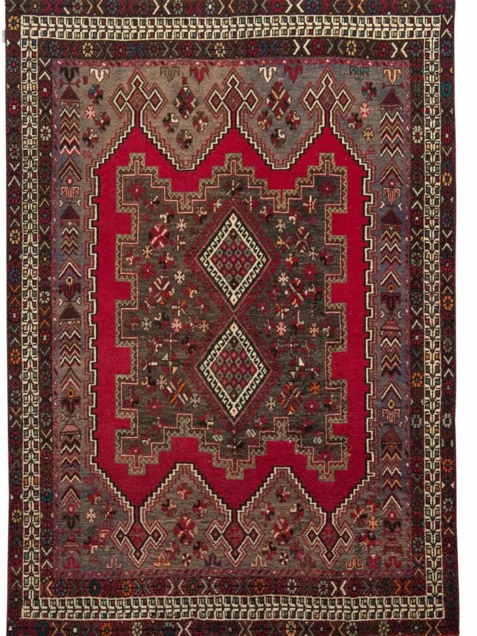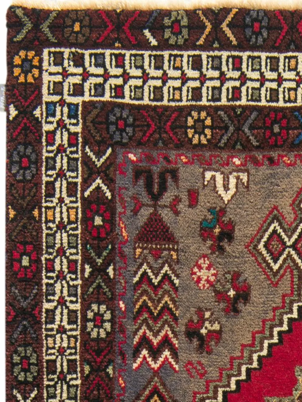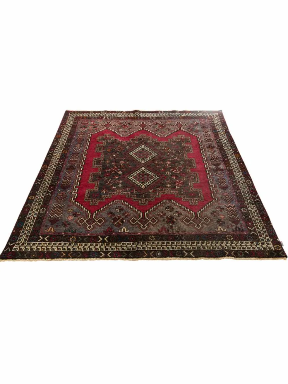 im Südosten Persiens geknüpft. Typisch für diese Teppiche ist das Sekaleh-Muster. Ein 3-köpfiges Muster, „“seh““=3 und „“kaleh““=Kopf, das auch als 5-köpfige Variante geknüpft wird. Ein zweites typisches Muster ist das Heshmati, benannt nach dem Namen seines Erfinders. DasGrundgewebe