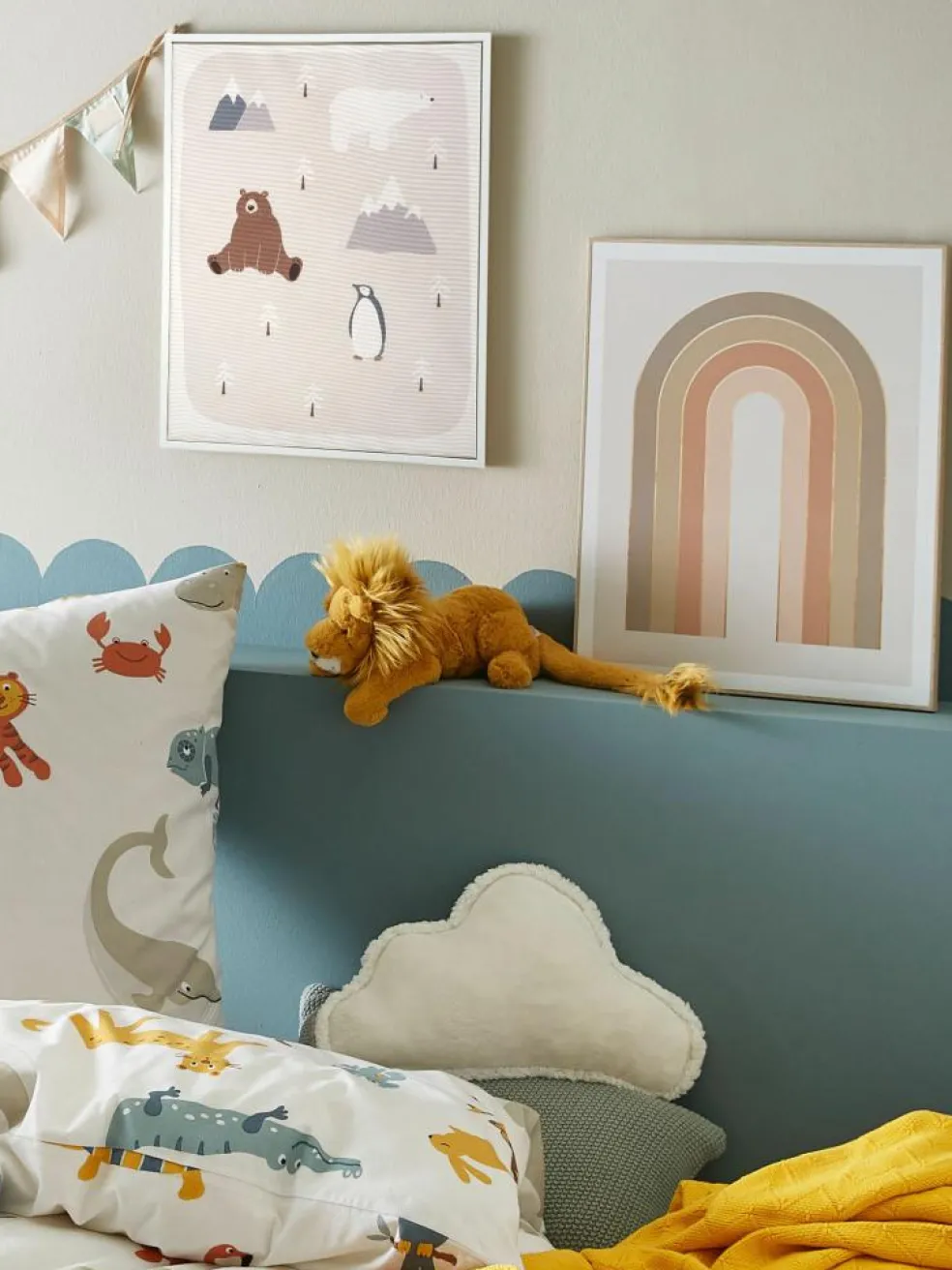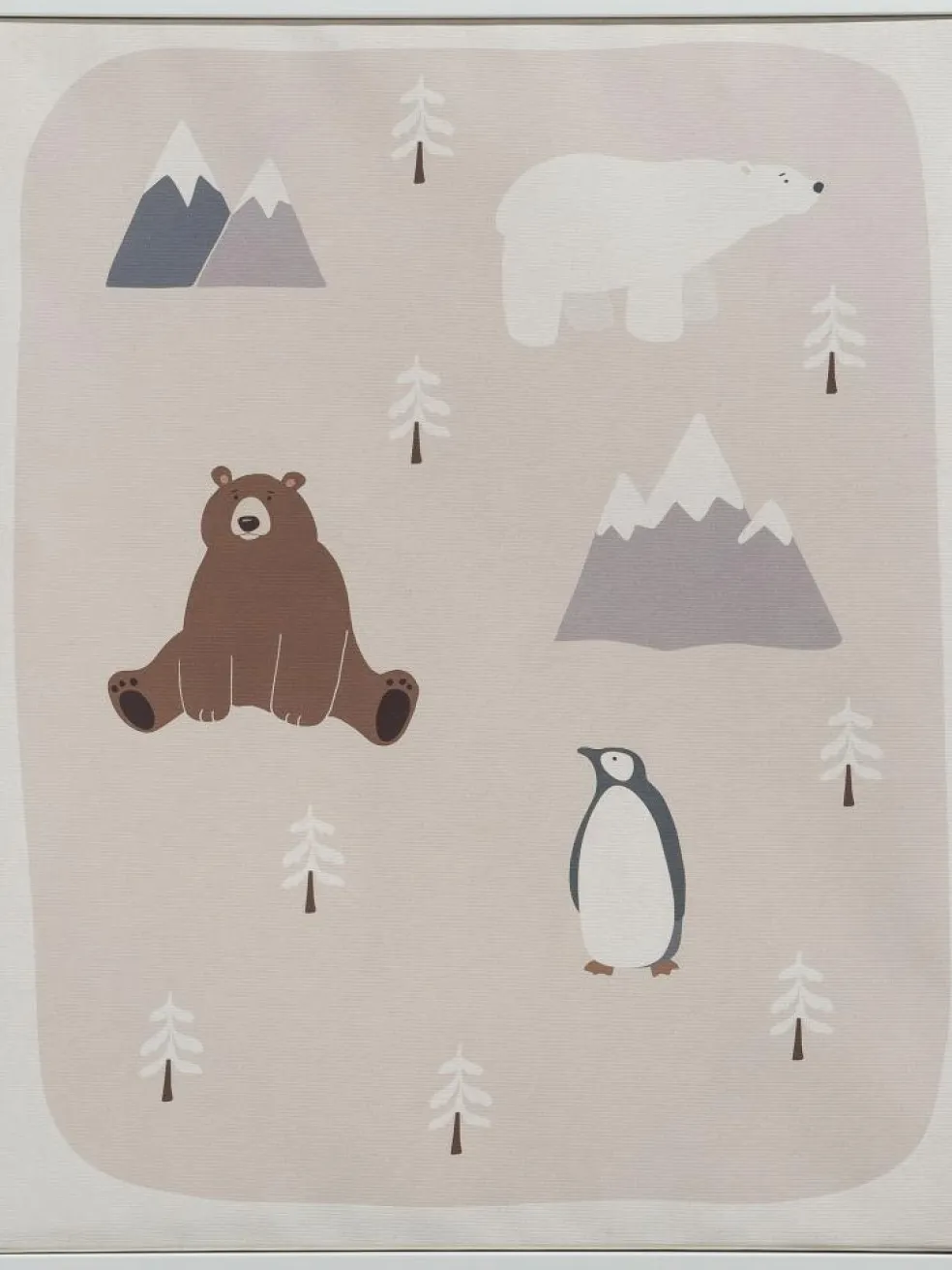 Winterbild in zurückhaltenden Farben für das Kinderzimmer. Fertig gerahmt in einem ca. 3 cm starken MDF-Rahmen. Mit Aufhängung versehen.
