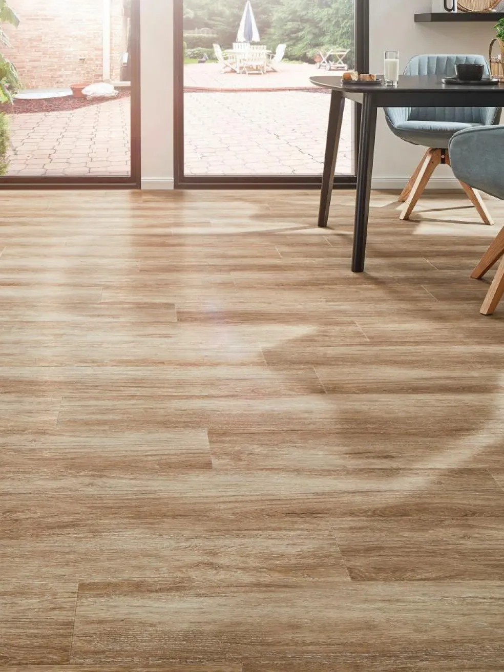 Der ultimative Trend-Belag. Profi-Design-Bodenbelag zur vollflächigen Verklebung mit sehr geringer Aufbauhöhe. Extrem belastbar. Ceramic-PU-Beschichtung. Hohe Nutzschicht von 0,55 mm. Ideal für Küche und Bad einsetzbar. 25 Jahre Garantie im Wohnbereich und 10 Jahre Garantie im Arbeitsbereich. Maße ca. 18 x 122 cm.