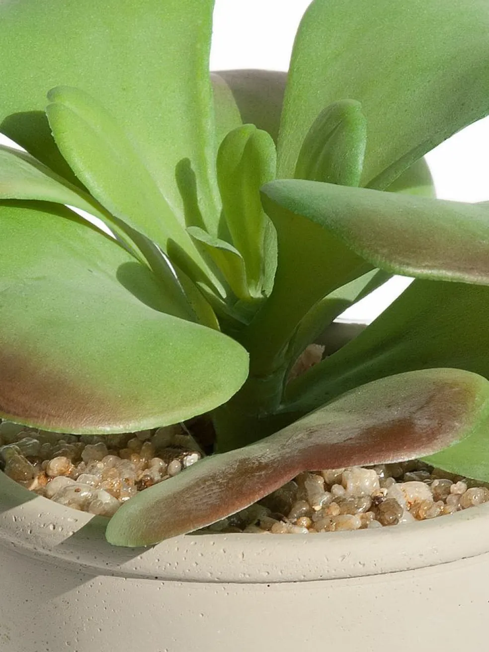 Diese naturgetreu gestaltete Sukkulente wirkt beinahe wie eine echte Pflanze. Der Vorteil: Man spart sich das Pflanzengießen! Die Kunstblume kommt in einem modernen Übertopf aus Zement.