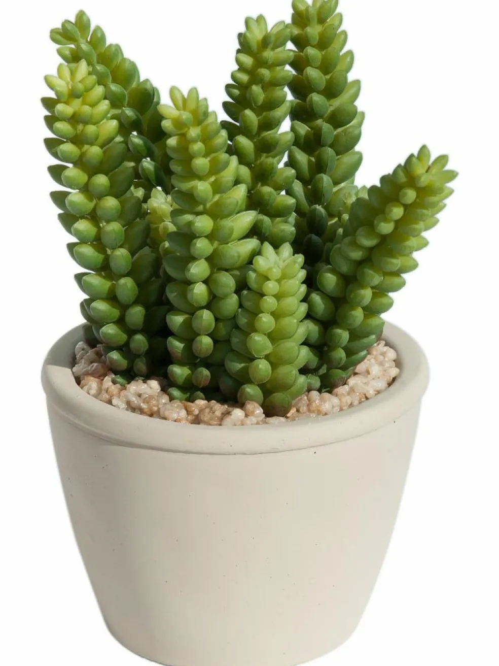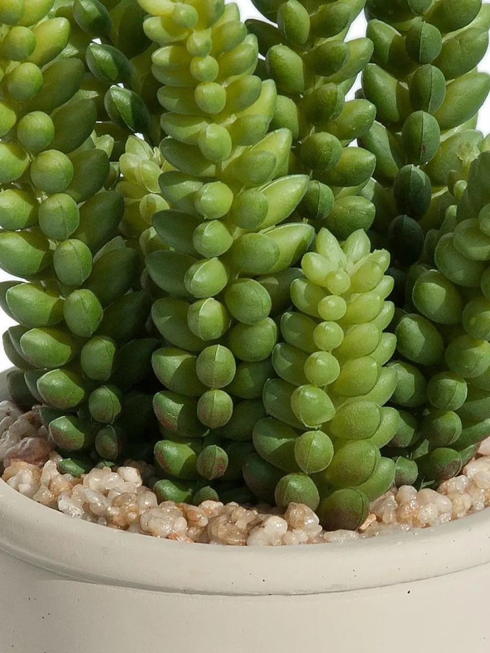 Diese naturgetreu gestaltete Sukkulente wirkt beinahe wie eine echte Pflanze. Der Vorteil: Man spart sich das Pflanzengießen! Die Kunstblume kommt in einem modernen Übertopf aus Zement.