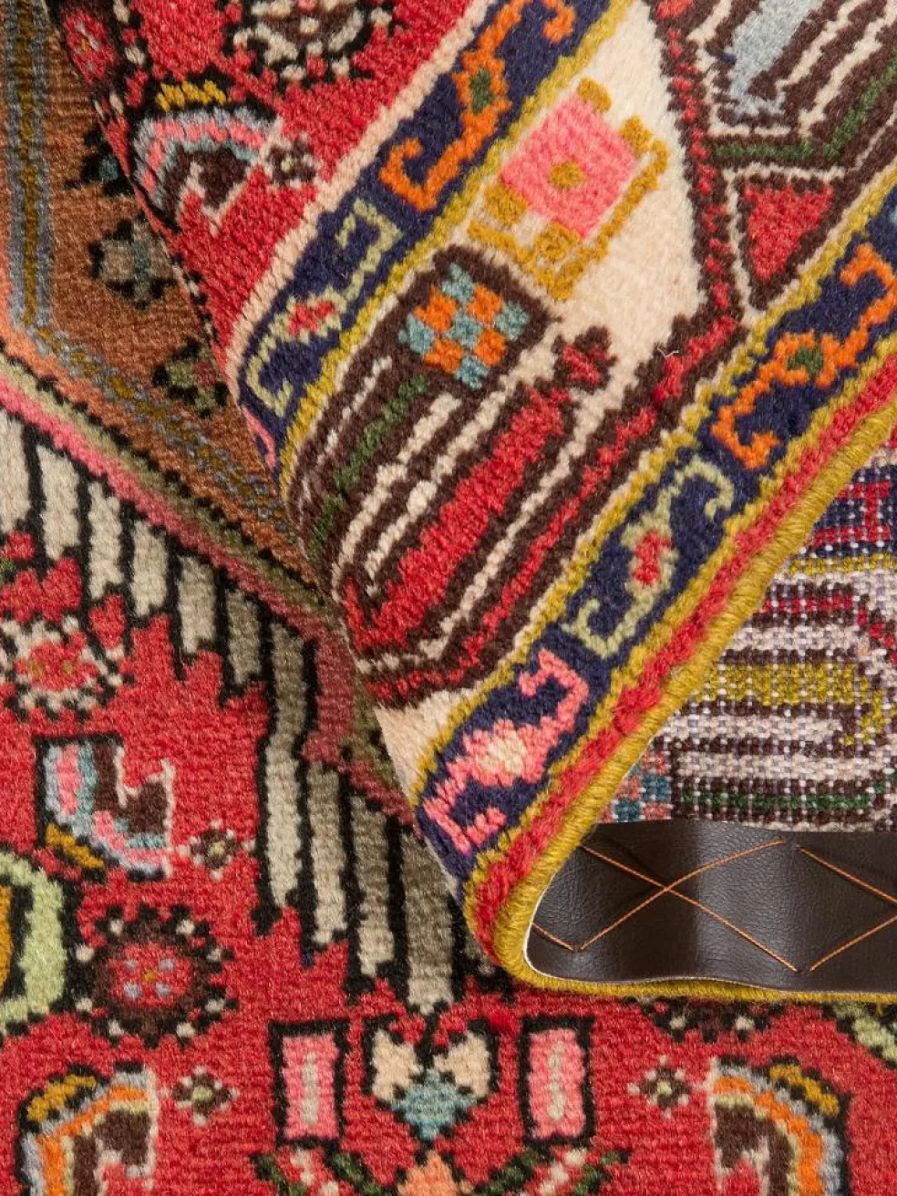 . Die Farben des Teppichs sind warm. Die Muster sind charakteristisch: Das Innenfeld ist mit einemMahi