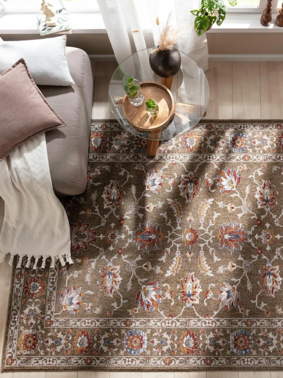 -Designs. Der gewebte Flor aus 100 % Polyester ist dabei besonders strapazierfähig und pflegeleicht. Besonderes Augenmerk liegt auf der hohen Dichte von 524.000 Florfäden pro m², die für eine einzigartige, luxuriöse Haptik sorgen.| Art: | Orient-Teppich , gewebt |