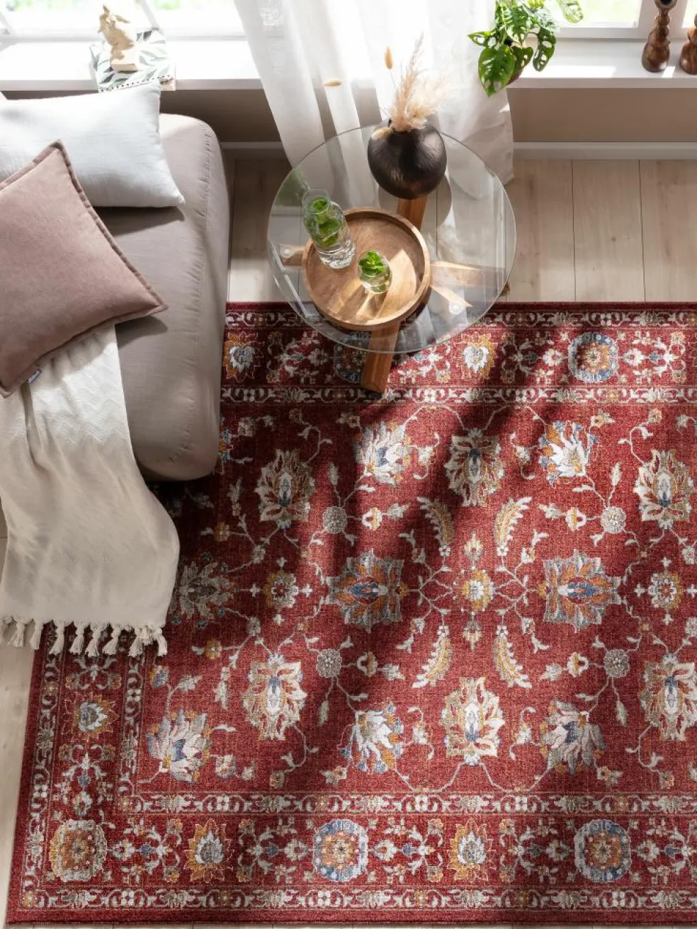 -Designs. Der gewebte Flor aus 100 % Polyester ist dabei besonders strapazierfähig und pflegeleicht. Besonderes Augenmerk liegt auf der hohen Dichte von 524.000 Florfäden pro m², die für eine einzigartige, luxuriöse Haptik sorgen.| Art: | Orient-Teppich , gewebt |