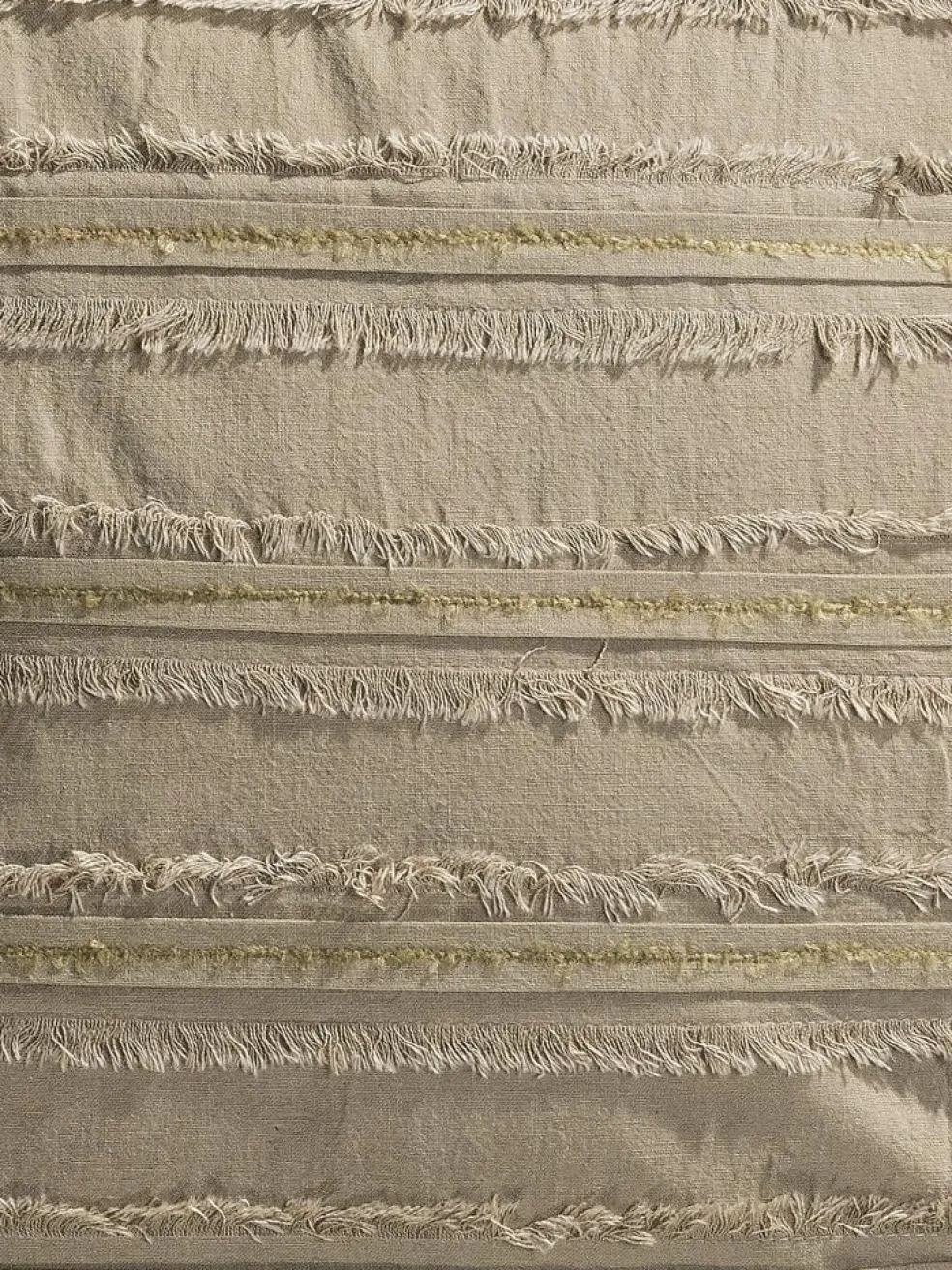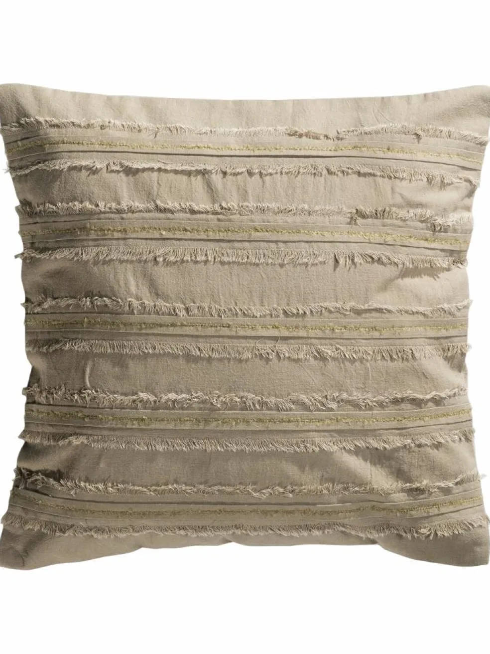 Ton in Ton: Unser Taree Kissen überzeugt mit seinen tollen Details. Grundmaterial und Verzierung sind im selben Farbton gehalten. Durch eine verspielte Verzierung mit offener Kantenverarbeitung entsteht ein moderner Streifen-Look, der sich dezent zurückhält und doch ins Auge fällt. Die zarten