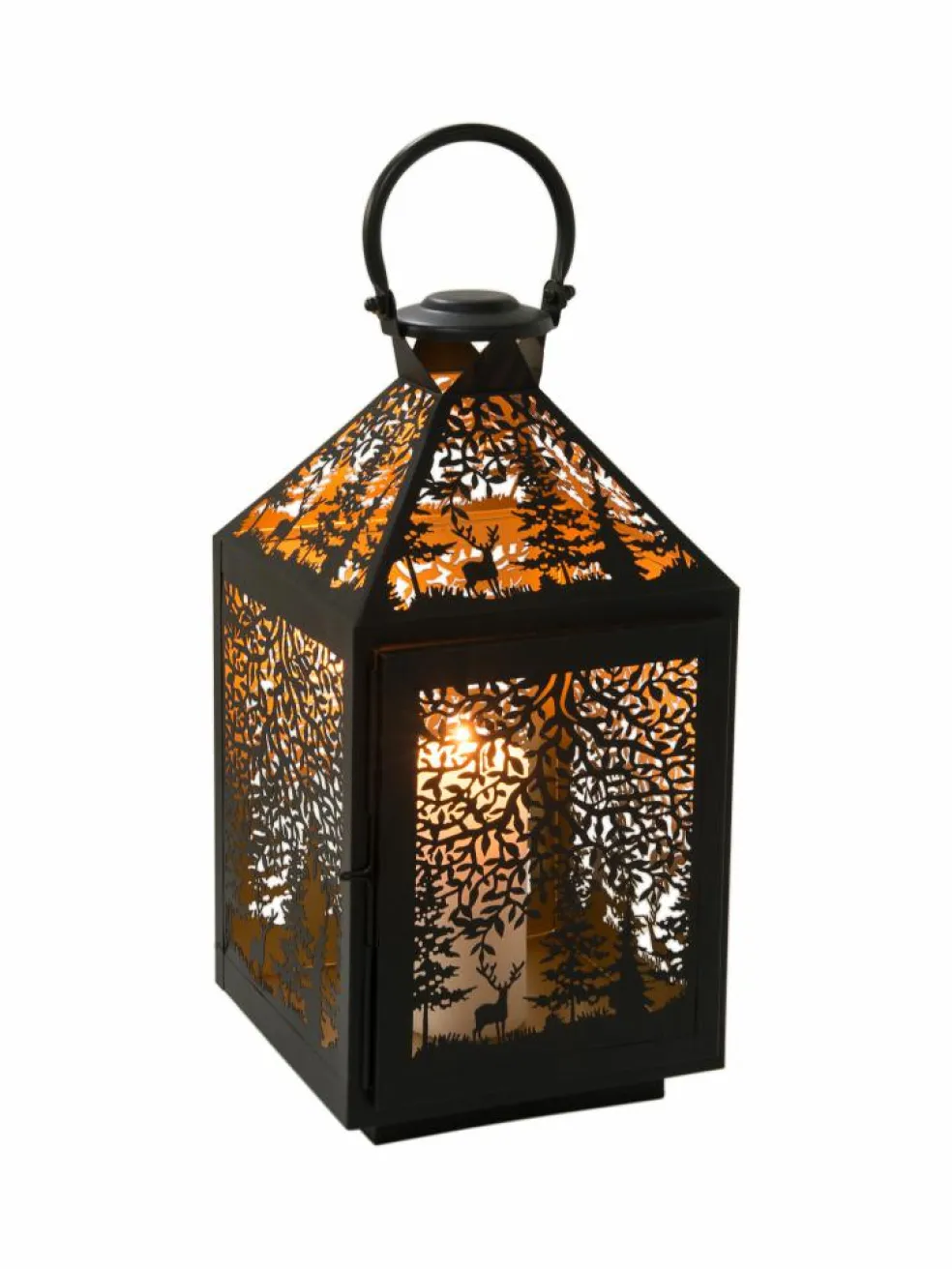 Es wird winterlich mit unserer Laterne Telfs. Das filigran ausgestanzte Metall zeigt eine winterliche Landschaft. Die goldfarbene Beschichtung im Inneren verteilt das Kerzenlicht auf eine besondere Weise und sorgt so für eine gemütliche Atmosphäre.