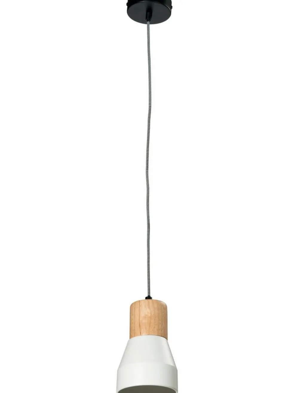 Der Lampenschirm unserer Toreby Hängeleuchte ist aus robustem, pulverbeschichtetem Metall gefertigt und wird von einem Element aus Gummibaumholz gehalten. Das schwarz-weiße Textielkabel hat eine Länge von ca. 1,5 m. Zu verwendende Leuchtmittel (nicht inklusive): E27, max. 40 W.