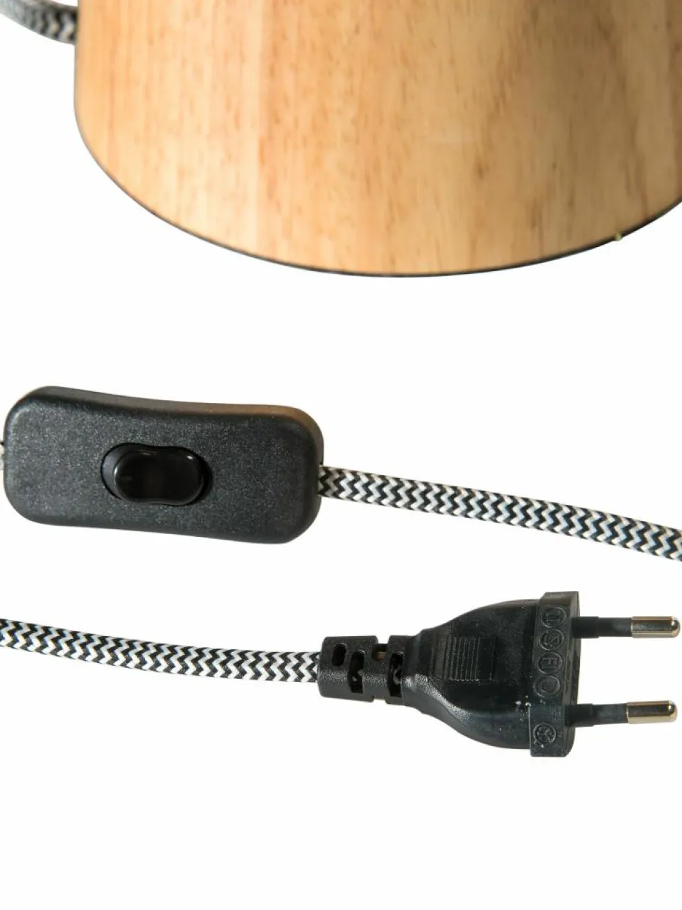 Die elegante Tischleuchte vereint modernes Design mit natürlichen Akzenten. Der matte Lampenschirm aus pulverbeschichtetem Metall sorgt für eine schlichte und zeitlose Optik, während der Stand aus hellem Gummibaumholz Wärme und Natürlichkeit verleiht. Mit Kippschalter. Schwarz-weißes Textilkabel mit ca. 1,5 m Länge. Zu verwendende Leuchtmittel (nicht inklusive): E27, max. 40 W.