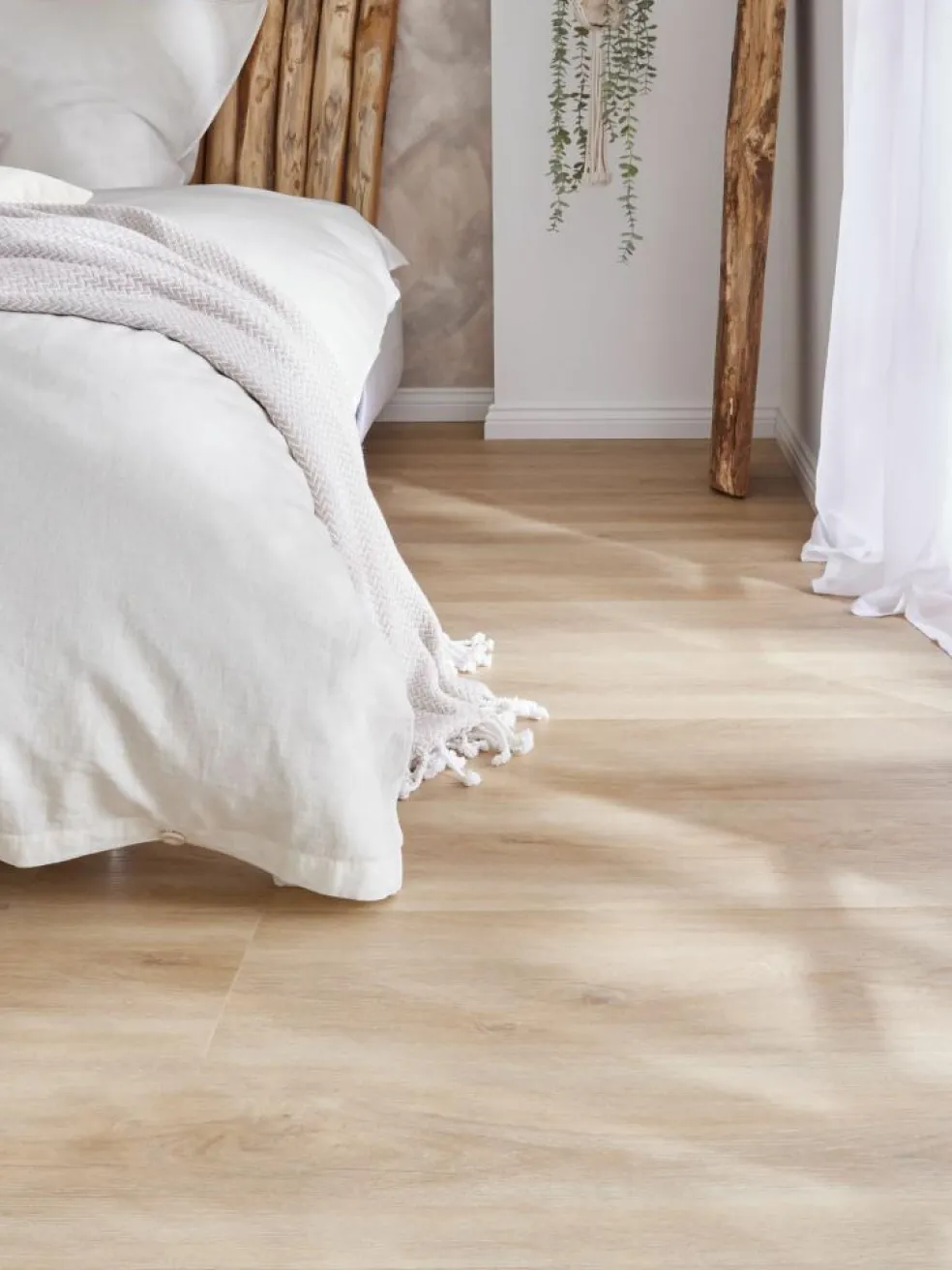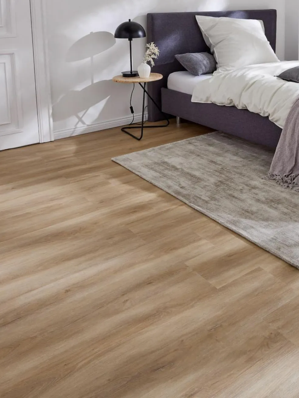 Innovatier Designbelag. Authentische Prägung. Extrem belastbar. Wasserresistent. Nutzschicht ca. 0,3 mm. Gesamtstärke 4 mm.