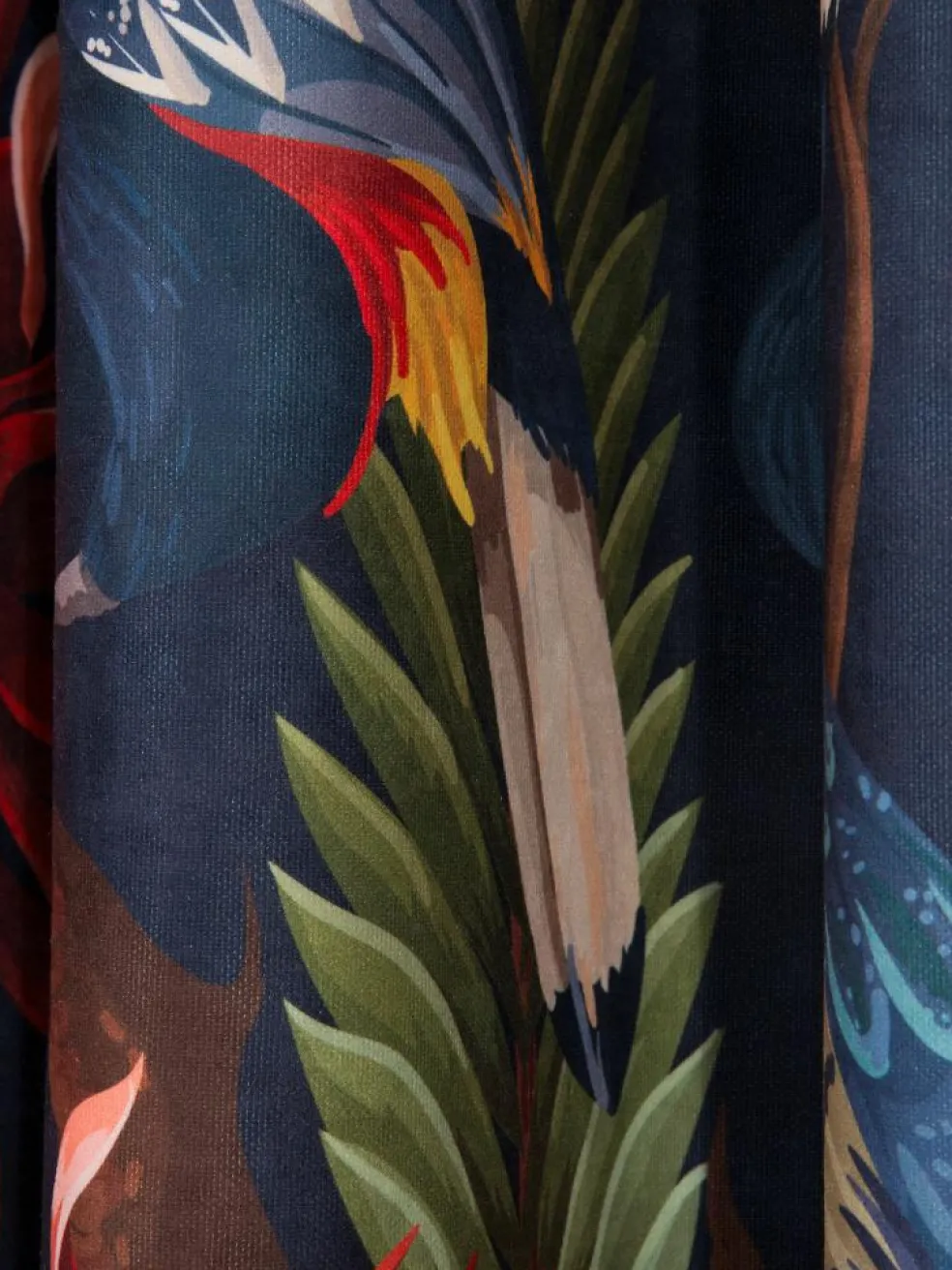 Welcome to the Jungle! Dieser Fertigschal mit silbernen Ösen ist ein absoluter Eye-Catcher. Das ausdrucksstarke Dschungel-Muster auf dunklem Hintergrund ist ein Trendprodukt für Fans der maximalistischen Einrichtung. Dieser Vorhang ist nicht transparent und kann den Wohnraum entsprechend abdunkeln. Tucani ist aus 100 % Polyester (PES) hergestellt, ist pflegeleicht und bei 30 °C waschbar. Paket enthält je einen Ösenschal.