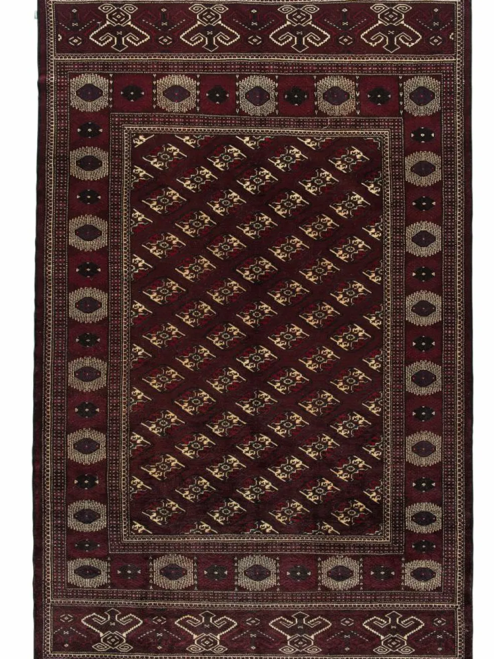 Die Volsgruppe der Turkmenen setzt sich aus einer Vielzahl von Stämmen zusammen. Berühmt wurden sie durch ihre Teppichknüpfkunst. Typisches Hauptmotiv ist das jeweilige Stammeszeichen, das sogenannte