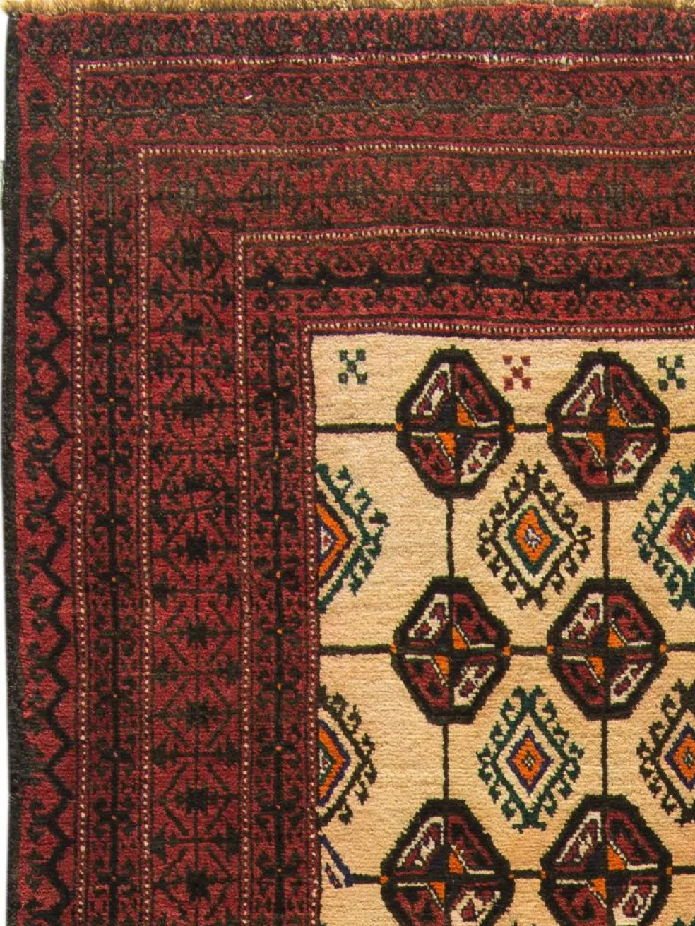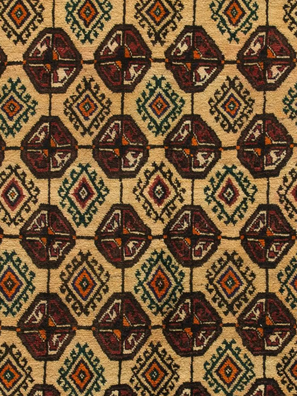 Die Volsgruppe der Turkmenen setzt sich aus einer Vielzahl von Stämmen zusammen. Berühmt wurden sie durch ihre Teppichknüpfkunst. Typisches Hauptmotiv ist das jeweilige Stammeszeichen, das sogenannte