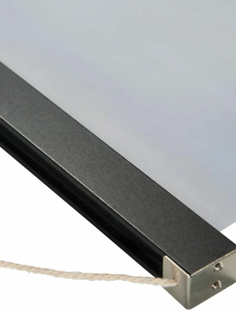 Oben und unten auf Echtholzstab befestigt. Hanfseil-Aufhängung.