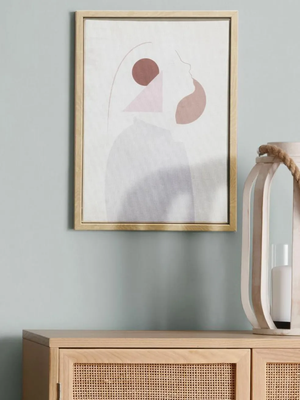 Modernes Giclée in Pastelltönen. Naturfarbener Rahmen, ca. 3 cm stark. Die Aufhängung ist schon montiert.
