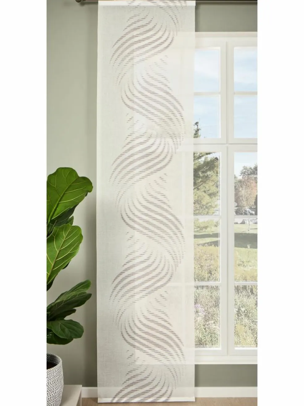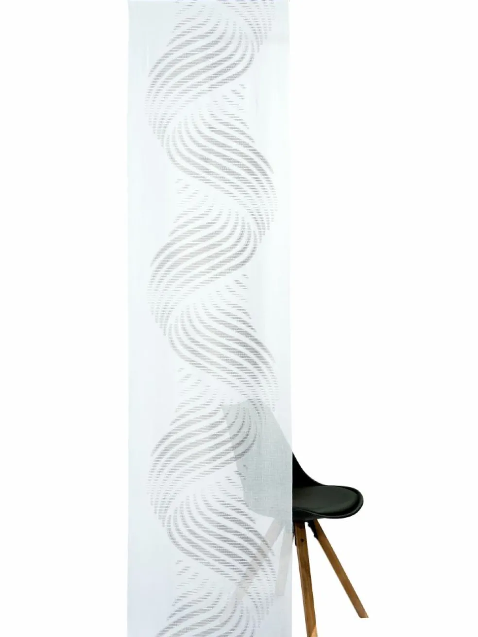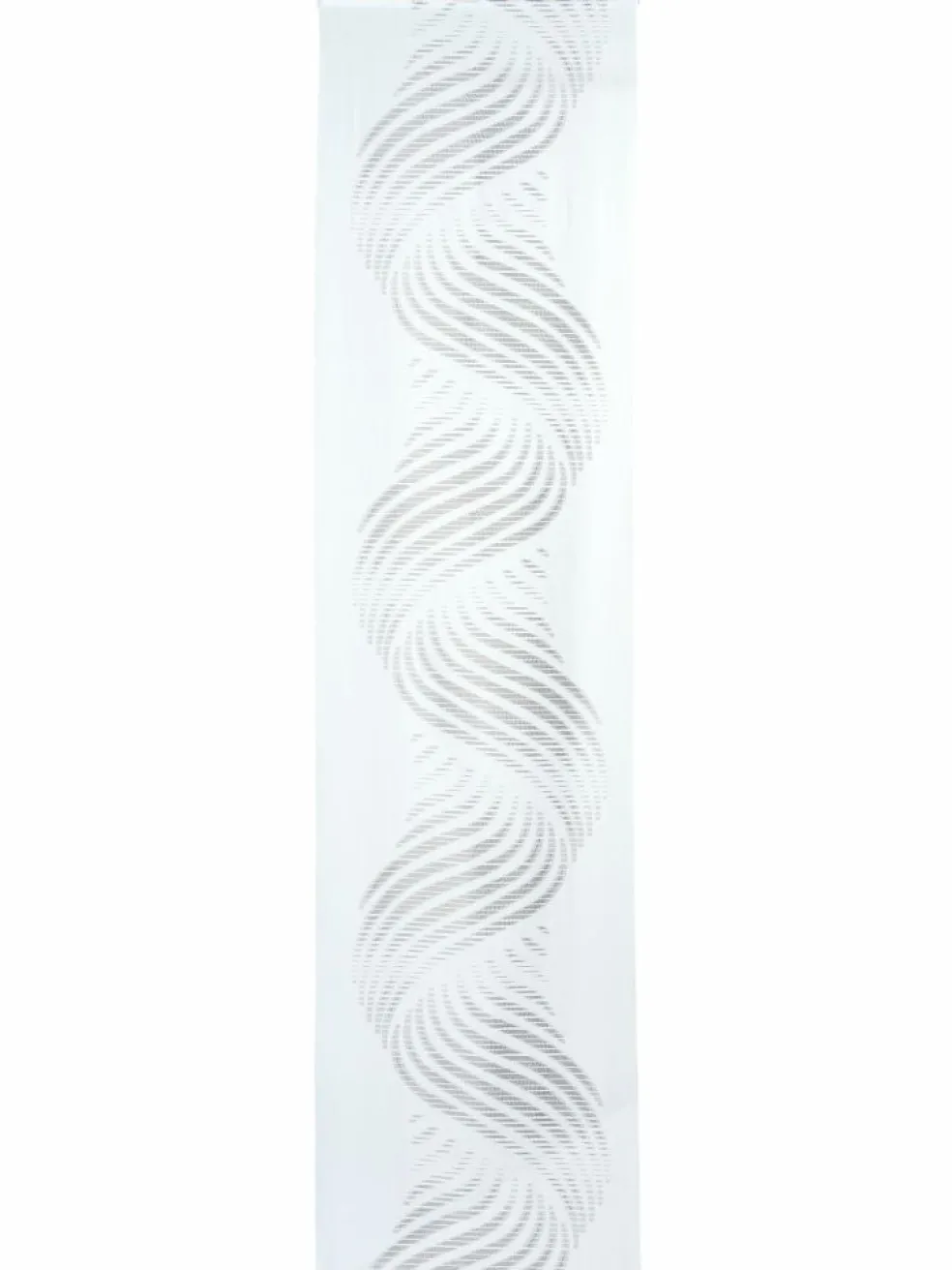 Ein dekorativer, leicht transparenter Flächenvorhang mit ausdrucksstarkem Wellen-Motiv. Das schlichte Design in Weiß sorgt für eine moderne und stilvolle Fensterdekoration. Hergestellt aus 100 % Polyester und bei bis zu 30 °C waschbar. Paket enthält je einen Vorhang.