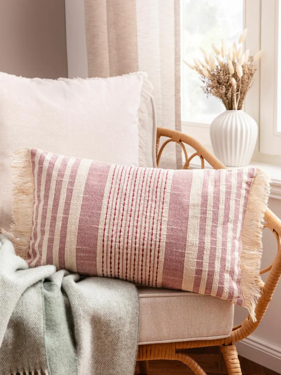 in Kombination mit einer tollen, natürlichen Leinen-Struktur. Eine dezente Streifenoptik, die durch ein besonderes Stitching entsteht, verleiht diesem Kissen eine besondere Raffinesse. Die sanften Trendfarben lassen sich mühelos in jedes Wohnkonzept integrieren. Die Kissenhülle besteht aus 100 % Baumwolle. Inklusive Füllung aus 100 % Polyester. Mit rückseitigem Reißverschluss.| Farbe: | Beere |
