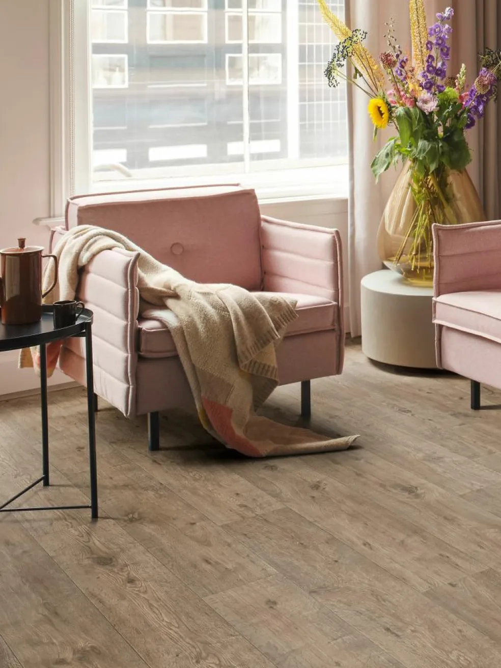 Vinylbodenbelag mit natürlichem Holzdesign. Mit einer Stärke von 2,80 mm äußerst belastbar. Für den gesamten Wohnbereicht geeignet. Auch für Räume mit Fußbodenheizung geeignet.