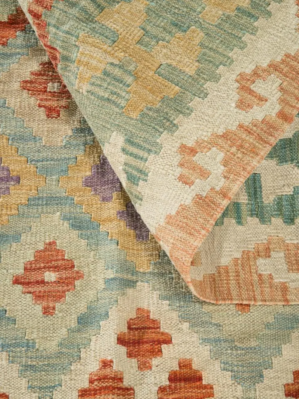 beidseitig verwendbar. – Durch den typischen weichen, deckenartigen Charakter des Kelims empfehlen wir eine trittfedernde und rutschhemmende Teppichunterlage zwischen Fußboden und Teppich zu legen. Sie finden unsere KIBEK ALLSTOP-SUPER unter ‚Teppiche‘ in der Kategorie ‚Teppichunterlagen‘ hier bei uns im Onlineshop.| Gesamthöhe: | ca. 5 mm |