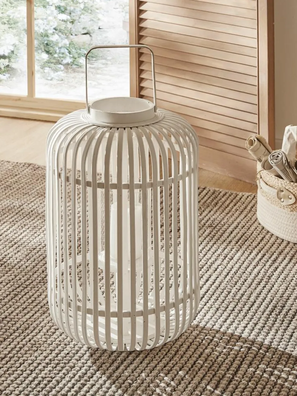 Laterne aus Bambus mit Glaseinsatz für die Kerze.