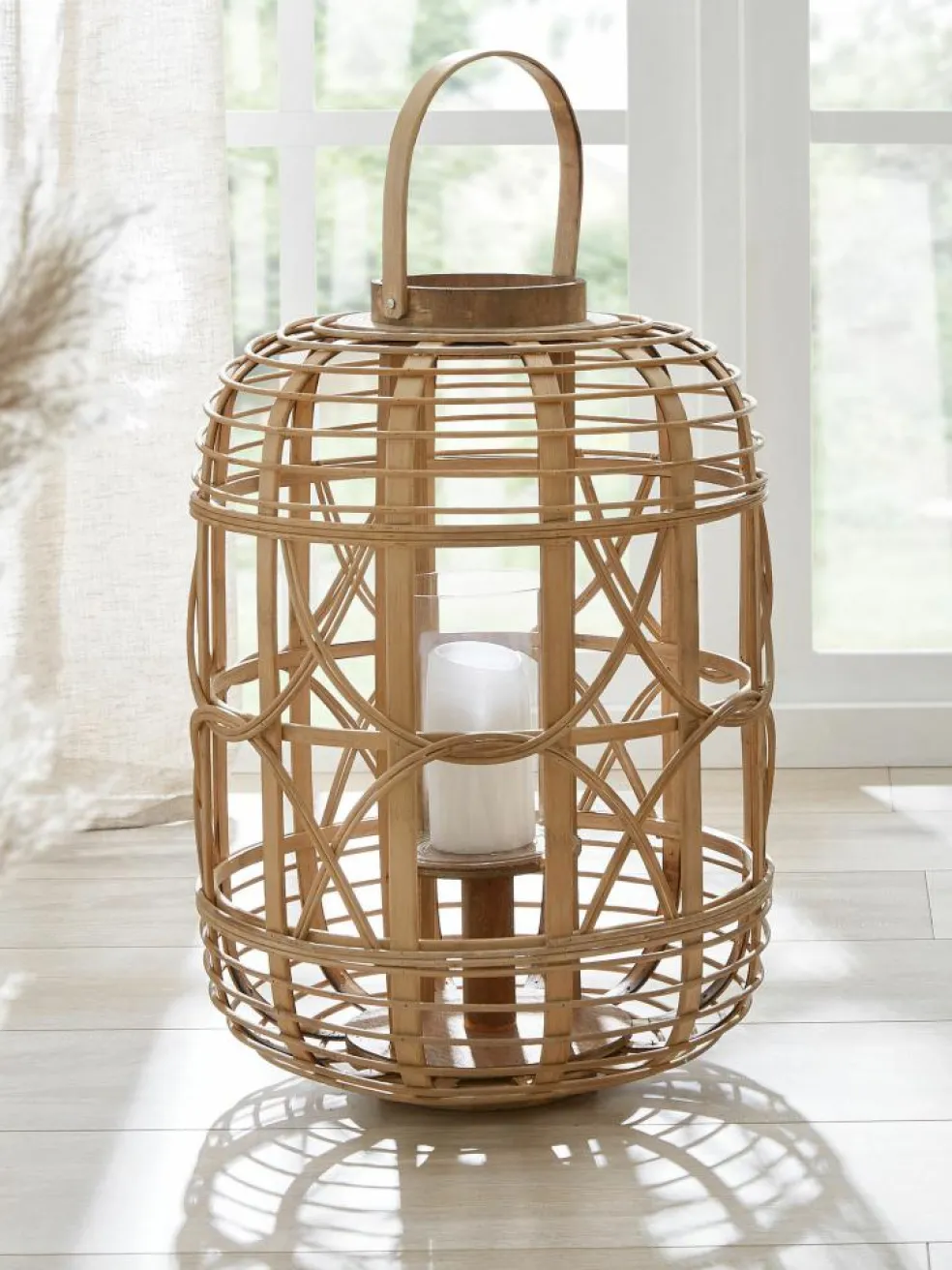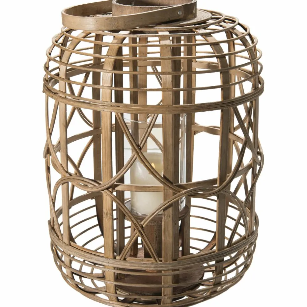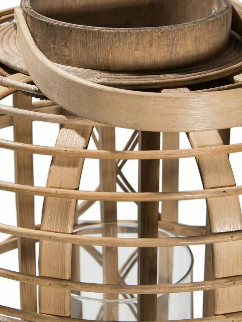 Diese Bambus-Laterne macht eine gute Figur auf jedem Balkon oder Terrasse. Mit Glaseinsatz.