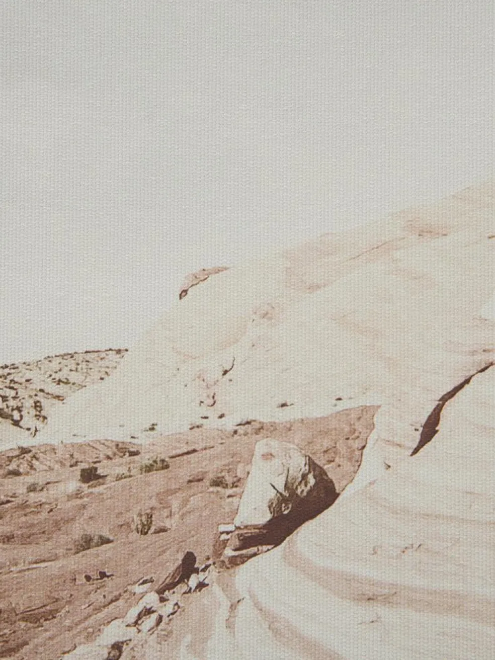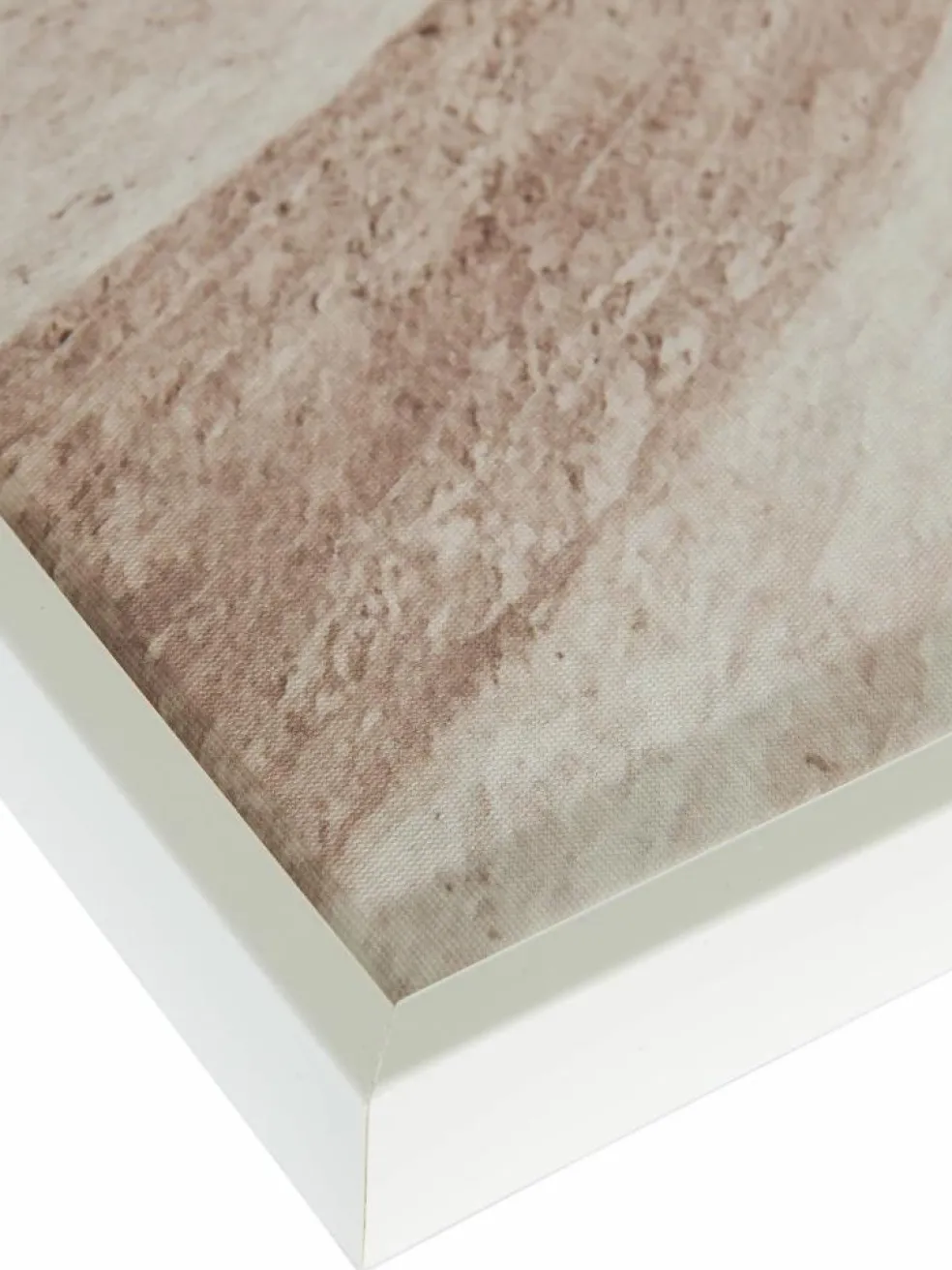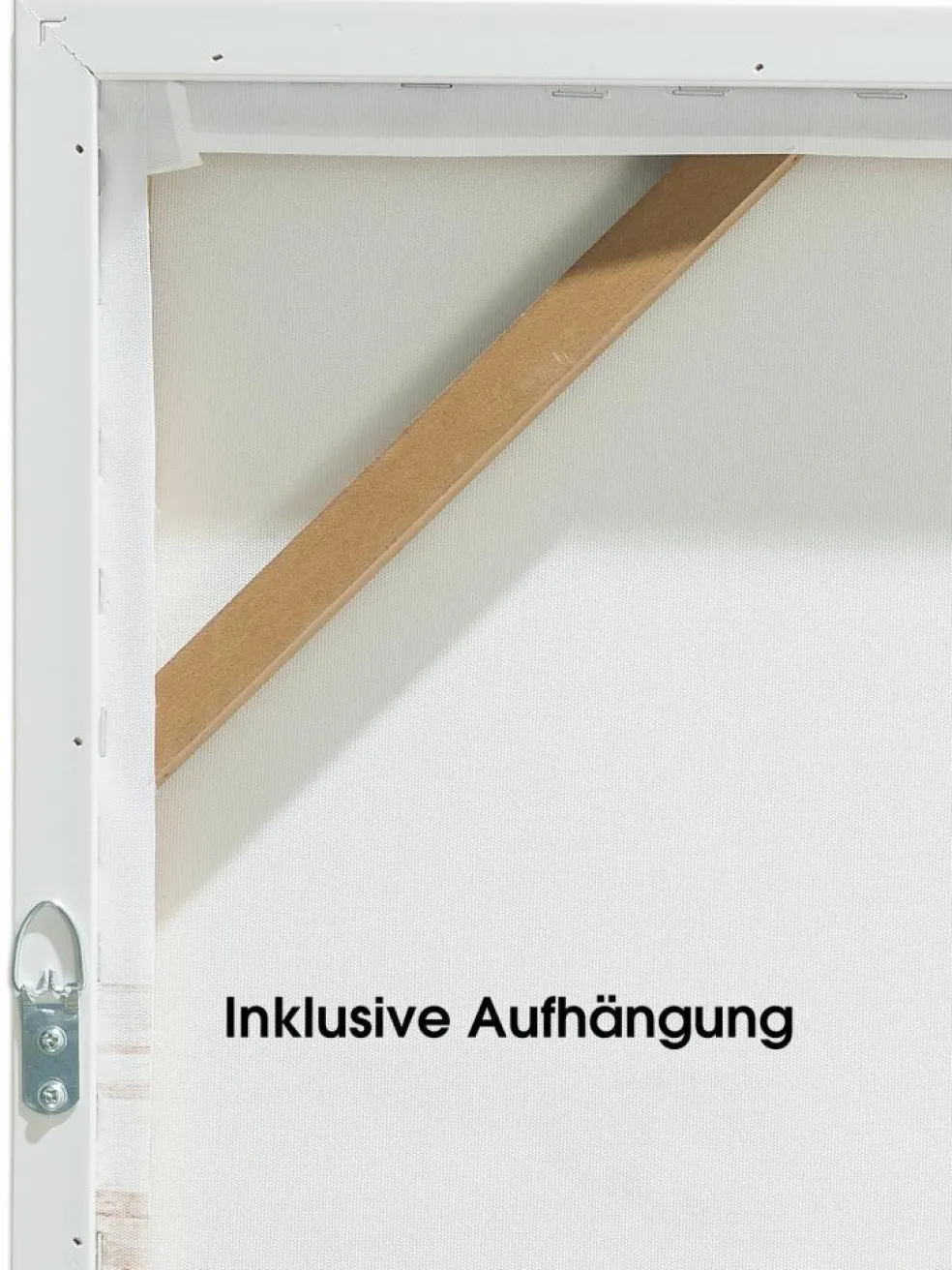 Monochromer Fotodruck in weißem Rahmen. Die Aufhängung ist schon montiert.