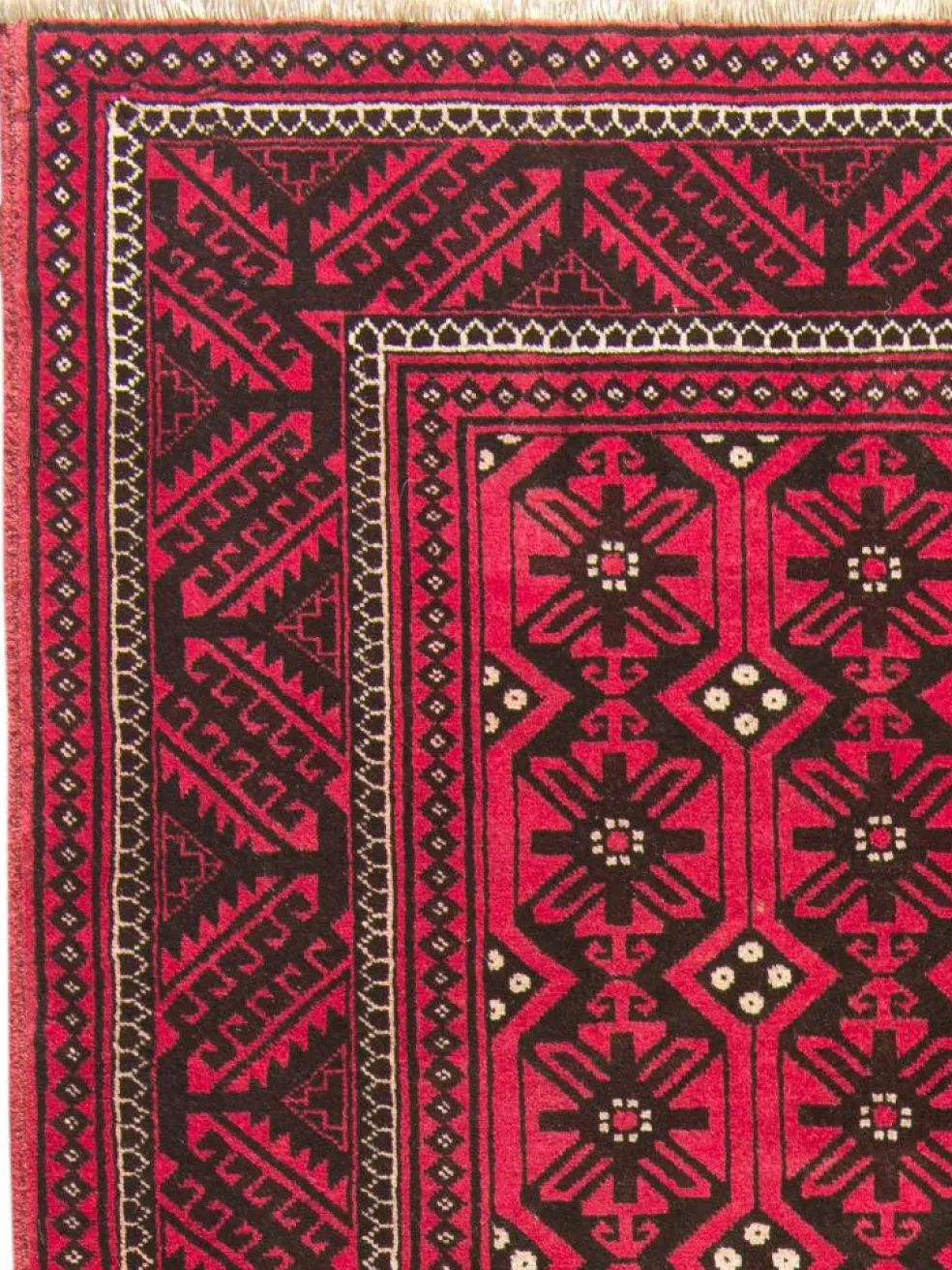 -Teppich hat seinen Namen vom Stamme der Baluchen, wird aber auch von anderen Stämmen geknüpft. Die einzelnen Stämme bleiben dabei ihren traditionellen Mustern und ihrer individuellen Farbgebung treu. Daher ist einBelutsch