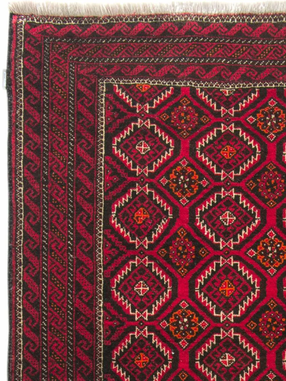 -Teppich hat seinen Namen vom Stamme der Baluchen, wird aber auch von anderen Stämmen geknüpft. Die einzelnen Stämme bleiben dabei ihren traditionellen Mustern und ihrer individuellen Farbgebung treu. Daher ist einBelutsch